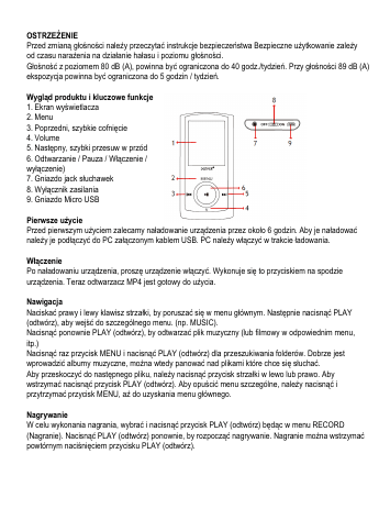 urządzenia. Teraz odtwarzacz MP4 jest gotowy do użycia.