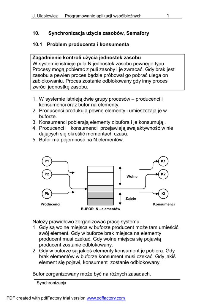 1 10. Synchronizacja użycia zasobów, Semafory 10.1 Problem
