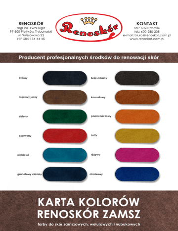 czarny brąz ciemny brązowy jasny karmelowy zielony pomarańczowy czerwony żółty niebieski granatowy ciemny różowy chabrowy