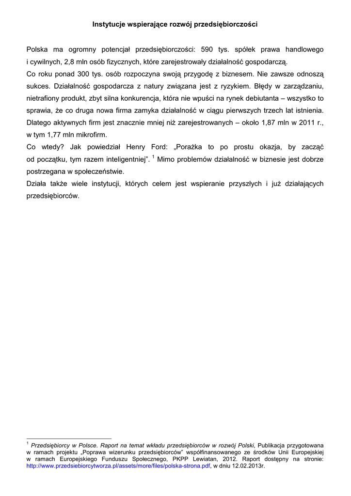 Instytucje wspierające rozwój przedsiębiorczości