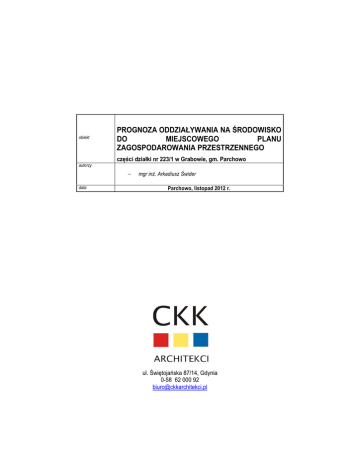 obiekt PROGNOZA ODDZIAŁYWANIA NA ŚRODOWISKO DO MIEJSCOWEGO PLANU ZAGOSPODAROWANIA PRZESTRZENNEGO części działki nr 223/1 w Grabowie, gm. Parchowo autorzy − data mgr inż. Arkadiusz Świder Parchowo, listopad 2012 r. ul. Świętojańska 87/14, Gdynia 0-58 62 000 92 [email protected] Prognoza oddziaływania na środowisko do zmiany miejscowego planu zagospodarowania przestrzennego, dot. fragmentu obrębu geodezyjnego Grabowo, gm. Parchowo SPIS TREŚCI: 1 WSTĘP.............................................................................................................................. 4 1.1 Cel i podstawa prawna opracowania .................................................................................4 1.2 Metoda opracowania.....................................................................................................4 2 FUNKCJONOWANIE ŚRODOWISKA NA TERENIE OPRACOWANIA............................................... 5 2.1 Położenie terenu..........................................................................................................5 2.2 Położenie fizyczno-geograficzne ......................................................................................6 2.3 Geomorfologia i budowa geologiczna, złoża kopalin .............................................................6 2.4 Rzeźba powierzchni......................................................................................................6 2.5 Gleby........................................................................................................................7 2.6 Szata roślinna .............................................................................................................7 2.7 Fauna .......................................................................................................................7 2.8 Klimat .......................................................................................................................8 2.9 Wody powierzchniowe...................................................................................................8 2.10 Wody podziemne .........................................................................................................8 3 OBSZARY OBJĘTE PRAWNĄ OCHRONĄ PRZYRODY WYSTĘPUJĄCE NA TERENIE OPRACOWANIA. 9 4 KOMUNIKACJA I INFRASTRUKTURA TECHNICZNA ..................................................................10 4.1 Układ transportowy.....................................................................................................10 4.2 Sieć infrastruktury technicznej .......................................................................................10 5 OCENA STANU ŚRODOWISKA .............................................................................................11 5.1 Jakość wód podziemnych ............................................................................................11 5.2 Jakość wód powierzchniowych ......................................................................................11 5.3 Stan czystości powietrza atmosferycznego .......................................................................11 5.4 Klimat akustyczny ......................................................................................................12 5.5 Poważne awarie ........................................................................................................12 6 CHARAKTERYSTYKA USTALEŃ PROJEKTU MPZP...................................................................12 6.1 Studium uwarunkowań i kierunków zagospodarowania przestrzennego ...................................12 6.2 Ustalenia miejscowego planu zagospodarowania przestrzennego ..........................................13 7 PRZEWIDYWANE SKUTKI DLA ŚRODOWISKA I JEGO KOMPONENTÓW WYNIKAJĄCE Z PROJEKTOWANEGO PRZEZNACZENIA TERENU ..................................................................15 7.1 Zabudowa usługowa – usługi turystyczno - wypoczynkowe (U)..............................................15 7.2 Budowa i modernizacja sieci infrastruktury technicznej ........................................................19 7.2.1 Budowa sieci infrastruktury technicznej podziemnej 19 7.2.2 Budowa i modernizacje dróg 21 7.3 Prognozowany wpływ na obszary chronione .....................................................................21 7.3.1 Park Krajobrazowy Dolina Słupi wraz z otuliną 21 7.3.2 Natura 2000 22 7.3.3 Gowidliński Obszar Chronionego Krajobrazu 22 7.3.4 Osnowa ekologiczna 22 8 ROZWIĄZANIA MAJĄCE NA CELU OGRANICZANIE NEGATYWNEGO ODDZIAŁYWANIA NA ŚRODOWISKO PROJEKTU PLANU MIEJSCOWEGO .................................................................23 9 CELE OCHRONY ŚRODOWISKA USTANOWIONE NA SZCZEBLU MIĘDZYNARODOWYM, WSPÓLNOTOWYM I KRAJOWYM, ISTOTNE Z PUNKTU WIDZENIA PROJEKTOWANEGO DOKUMENTU, ORAZ SPOSOBY, W JAKICH TE CELE I INNE PROBLEMY ŚRODOWISKA ZOSTAŁY UWZGLĘDNIONE PODCZAS OPRACOWYWANIA DOKUMENTU ..........................................................................26 9.1 Poziom międzynarodowy i krajowy .................................................................................26 9.2 Poziom regionalny i lokalny ..........................................................................................27 10 ISTNIEJĄCE PROBLEMY OCHRONY ŚRODOWISKA ISTOTNE Z PUNKTU WIDZENIA REALIZACJI PROJEKTOWANEGO DOKUMENTU, W SZCZEGÓLNOŚCI DOTYCZĄCE OBSZARÓW PODLEGAJĄCYCH OCHRONIE Z TYT. USTAWY O OCHRONIE PRZYRODY ..................................28 11 POTENCJALNE ZMIANY STANU ŚRODOWISKA W PRZYPADKU BRAKU UCHWALENIA PROJEKTU MIEJSCOWEGO PLANU ZAGOSPODAROWANIA PRZESTRZENNEGO ORAZ PROPOZYCJE METOD ANALIZY SKUTKÓW REALIZACJI USTALEŃ PLANU MIEJSCOWEGO............................................30 12 ODDZIAŁYWANIA TRANSGRANICZNE NA ŚRODOWISKO..........................................................31 2 Prognoza oddziaływania na środowisko do zmiany miejscowego planu zagospodarowania przestrzennego, dot. fr