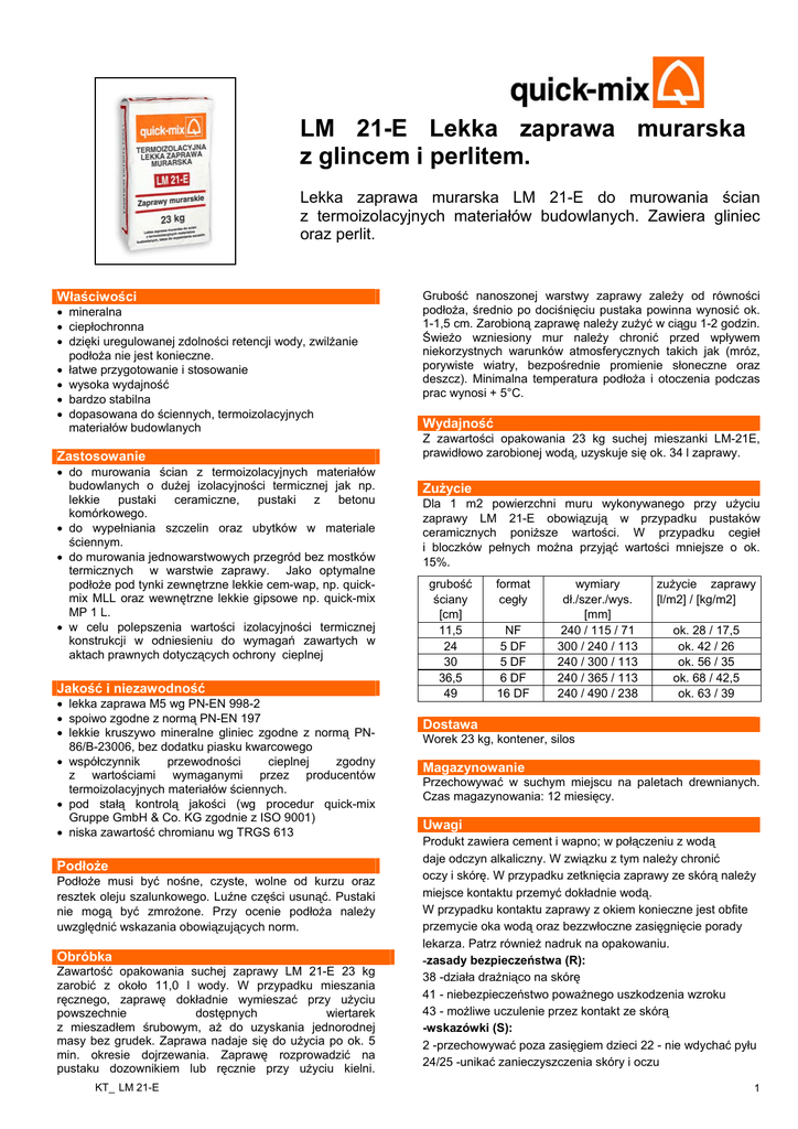 LM 21-E Lekka zaprawa murarska z glincem i perlitem.