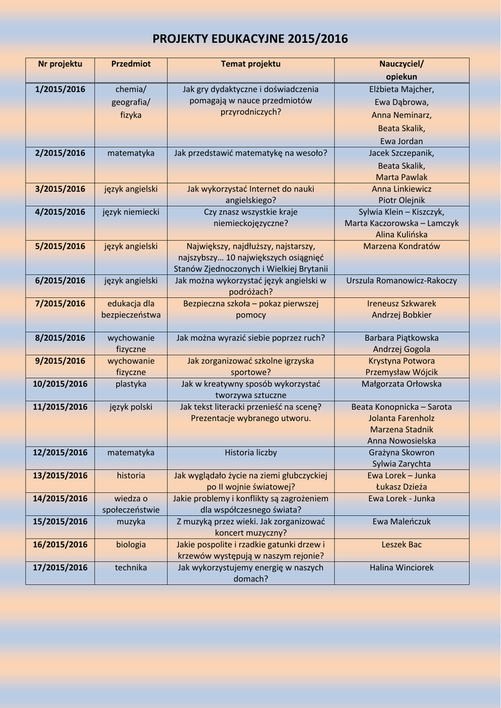 PROJEKTY EDUKACYJNE 2015/2016