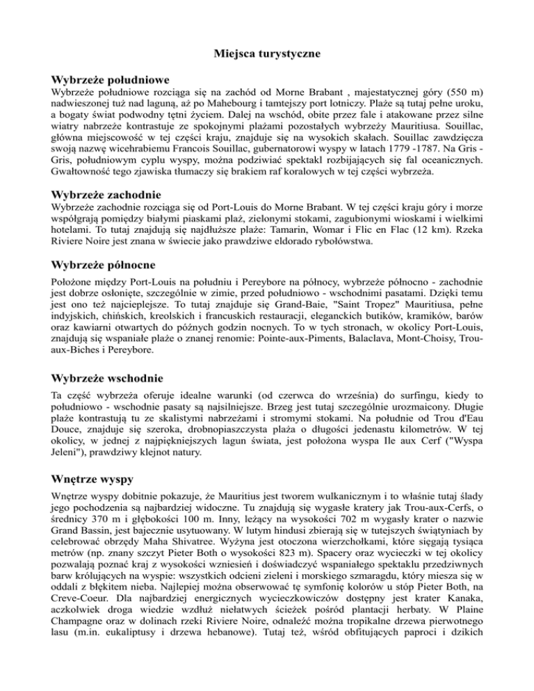 nadwieszonej tuż nad laguną, aż po Mahebourg i tamtejszy port lotniczy. Plaże są tutaj pełne uroku,