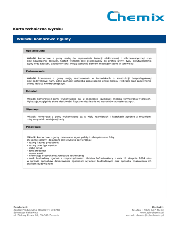 Karta techniczna wyrobu Wkładki komorowe z gumy