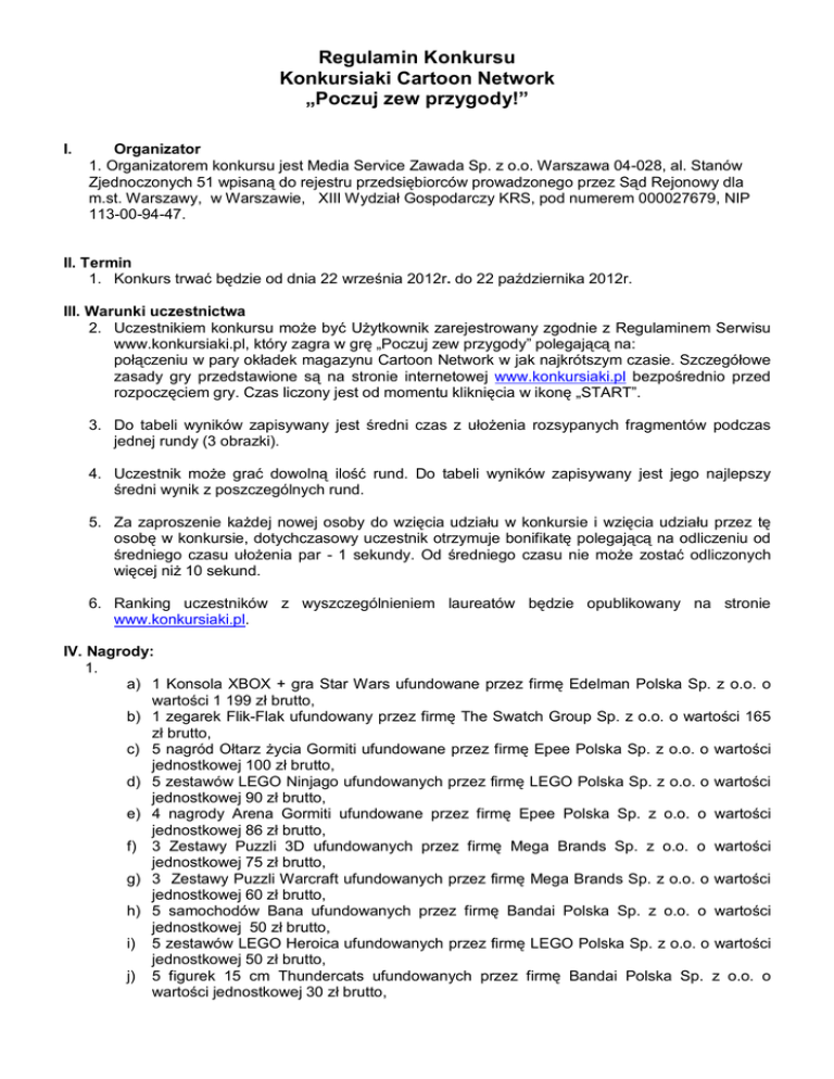 Regulamin Konkursu Konkursiaki Cartoon Network