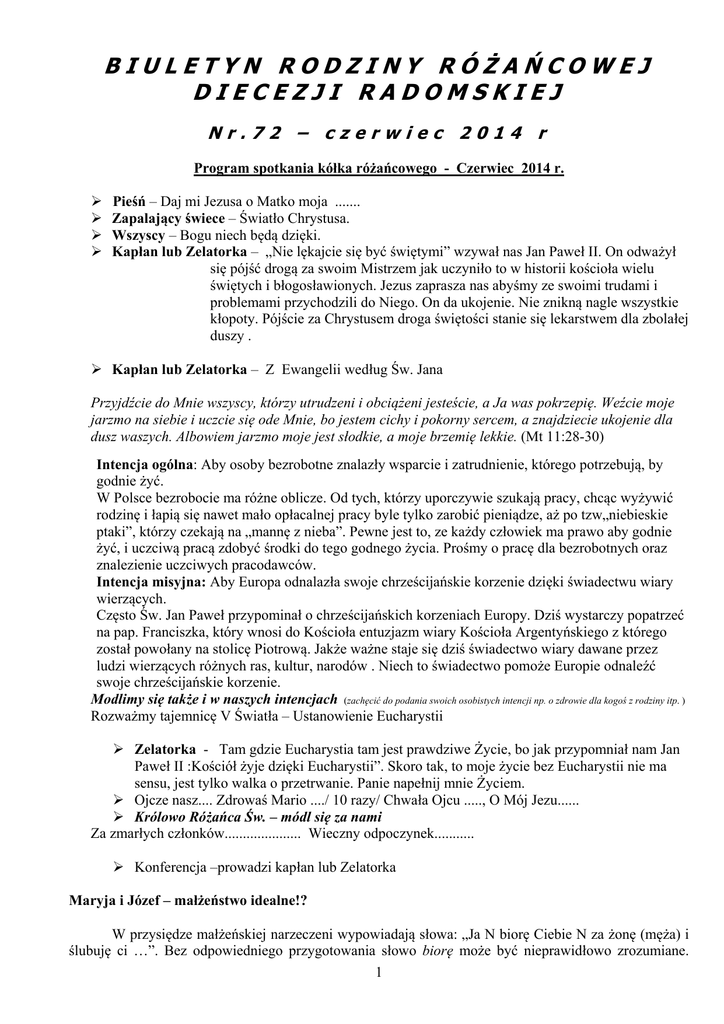 BIULETYN RODZINY RÓ Ż A Ń COWEJ DIECEZJI RADOMSKIEJ Nr