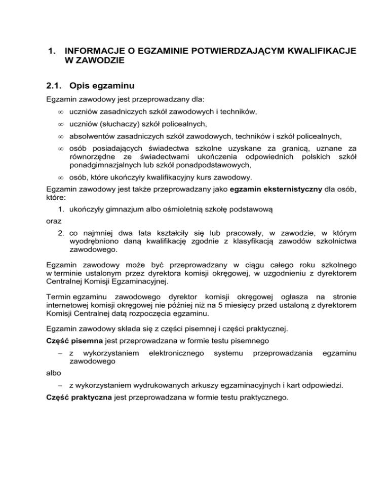 1. INFORMACJE O EGZAMINIE POTWIERDZAJĄCYM