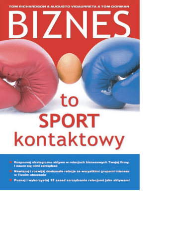 Spis treści Wprowadzenie 7 Zasada 1. Traktuj relacje jak cenne aktywa 15 Zasada 2. Opracuj plan gry 37 Zasada 3. Każda relacja musi mieć swojego właściciela 55 Zasada 4. Przekształcaj kontakty w więzi 75 Zasada 5. Wejdź do strefy „korzyść za korzyść” 93 Zasada 6. Poznaj swoich udziałowców 113 Zasada 7. Ze wszystkimi udziałowcami buduj więzi oparte na zaufaniu 129 Zasada 8. Unikaj niszczycieli relacji 145 Zasada 9. Jeśli coś się zepsuje, napraw to od razu 163 Zasada 10. Nabierz rozpędu i utrzymuj tempo 183 Zasada 11. Maksymalizuj długoterminową wartość relacji 203 Zasada 12. Stale zapewniaj korzyści każdemu ze swoich udziałowców 223 Epilog Zdrowy rozsądek zawsze w cenie 247 Dodatek Docelowe korzyści w relacjach między firmą a jej udziałowcami 249 Skorowidz 263 8 BIZNES TO SPORT KONTAKTOWY Zasada 1. Traktuj relacje jak cenne aktywa Zawsze powtarzam, że rozgrywający nie gra sam i że nie można oczekiwać, by cały ciężar ataku spoczął jedynie na jego barkach. By osiągnąć sukces, rozgrywający musi otrzymywać w trakcie meczu maksimum pewnej i użytecznej informacji. Tych, którzy próbują robić wszystko sami, czekają w czasie rozgrywek spore rozczarowania. (Ken Anderson, The Art of Quarterbacking) 16 BIZNES TO SPORT KONTAKTOWY Zawodowi sportowcy wiedzą, że kluczem do zwycięstwa jest gra zespołowa i dobra wymiana informacji na boisku. Mogłoby się wydawać, że rozgrywający to gwiazda drużyny futbolowej. Ken Anderson, jeden z najlepszych rozgrywających w historii amerykańskiego futbolu, wciąż powtarza w swojej książce, że rozgrywający słucha nie tylko poleceń trenera, ale także musi nastawić się na odbiór sygnałów od kolegów na tyłach boiska, zawodników liniowych czy graczy na liniach bocznych. Żeby wygrać mecz, potrzebuje każdego z nich. Potrzebuje nie tylko ich bloków, biegów, chwytów i przechwytów, ale także ich spojrzenia na szanse i zagrożenia pojawiające się na boisku i pomysłów, co można z nimi zrobić. Menedżerowie, przedsiębiorcy i specjaliści zdają sobie sprawę z tego, że i oni otoczeni są przez osoby, z których pomocy warto korzystać. Traktują swoje relacje z tymi osobami jako wartościowe aktywa, co stanowi pierwszą zasadę zarządzania relacjami jako aktywami (ang. RAM — Relationship Asset Management). Jeśli uznasz swoje relacje z innymi za aktywa, skupisz na nich swoją uwagę. Będziesz przygotowany i wykorzystasz je, by realizować cele firmy oraz jej udziałowców. Biznes bez zarządzania relacjami nie ma racji bytu. Pamiętaj o tym — kontrolując relacje, kontrolujesz całą grę. Odkrywanie wartości relacji A teraz gwizdek i czas! Zbieramy się na naradę1. Dołącz do nas, a dowiesz się, jak można wygrać mecz. Musisz chronić swoje aktywa i sprawiać, by pracowały dla Ciebie i dla Twojej firmy. Czy ta wskazówka jest potrzebna? Czy menedżerowie i przedsiębiorcy nie zarządzają swoimi aktywami? Czy nie wyszukują braków w surowcach i nie uzupełniają zapasów? Czy nie wykorzystują natychmiast nieużywanego sprzętu i pustych pomieszczeń biurowych? Czy nie dbają o to, by pracownicy nie marnowali czasu i energii? Czy nie ogłosili sezonu polowań na oszustwa, malwersacje, nieściągnięte długi i inne straty finansowe? 1 Narada (ang. huddle) — zgromadzenie graczy formacji atakującej w trakcie meczu futbolu amerykańskiego. Zawodnicy, stojąc i obejmując się ramionami, ustalają plan kolejnej zagrywki — przyp. tłum. TRAKTUJ RELACJE JAK CENNE AKTYWA 17 Oczywiście, że tak. A jednak stoją jak słupy soli, podczas gdy ich najcenniejsze aktywa przeciekają im przez palce, leżą odłogiem lub przynoszą finansowe straty. Chodzi tutaj o bieżące oraz potencjalne relacje firmy. Spójrzmy zatem, co się dzieje z relacjami biznesowym i opracujmy plan gry, który pozwoli identyfikować, oceniać, rozwijać i chronić te aktywa. W rzeczywistości niewielu menedżerów traktuje relacje jako aktywa. Co prawda, większość z nich zdaje sobie sprawę ze znaczenia relacji z klientami. To samo dotyczy relacji z pracownikami. Jednak — mimo że te dwie grupy udziałowców firmy są bardzo ważne — relacje z nimi nie są jedynymi istotnymi dla firmy. Relacje z każdym podmiotem, z którym firma ma (lub mogłaby z pożytkiem dla siebie mieć) kontakty to aktywa lub potencjalne aktywa. W biznesie niezbędne jest odkrycie całej wartości aktywów. W ten sam sposób menedżerowie i przedsiębiorcy powinni traktować relacje. Wiele firm nie docenia roli, jaką relacje odgrywają w ich działalności. Np. na początku lat dziewięćdziesiątych ubiegłego wieku jeden z największych producentów płatków śniadaniowych, ciastek i przekąsek zwolnił znaczną część doświadczonych przedstawicieli handlowych. Weterani sprzedaży kosztowali firmę więcej niż nowy, młody i niedoświadczony narybek. Kierownictwo firmy, opierając decyzje personalne na danych ekonomicznych, zwolniło wielu doświadczonych handlowców. Decyzję tę uzasadniała przyjęta strategia finansowa, której celem była redukcja kosztów — do czego dąży większość firm działających na rozwiniętych rynkach. Wydawało się, że podjęte kroki są zgodne również ze strategią marketingową. W końcu była to firma o długiej tradycji i znanej marce, więc kierownictwo wierzyło, że produkty nadal będą eksponowane na półkach supermarketów. Przecież w zasadzie sprzedawały się same. Niestety, nie do końca. W latach 1996 – 1999 roczna całkowita sprzedaż ciastek, przekąsek i płatków produkowanych przez tę firmę gwałtownie spadała. Analitycy donosili, że firma nie doceniła znaczenia relacji, jakie przedstawiciele handlowi nawiązali z kierownikami supermarketów i sklepów spożywczych. Okazało się, że do zwycięstwa w walce o miejsce na półce sklepowej nie wystarczy znana marka. O wygranej decydują również relacje między handlowcami firmy a osobami, które 