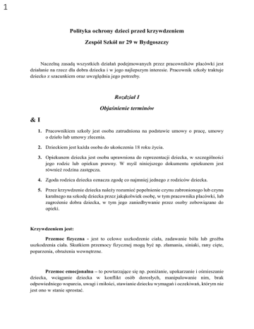 brzmienie Polityki Ochrony Dzieci przed krzywdzeniem przez dorosłych
