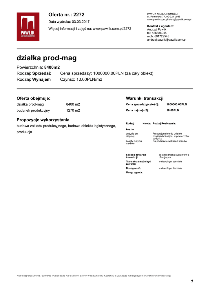 działka prod-mag - Pawlik Nieruchomości Łódź