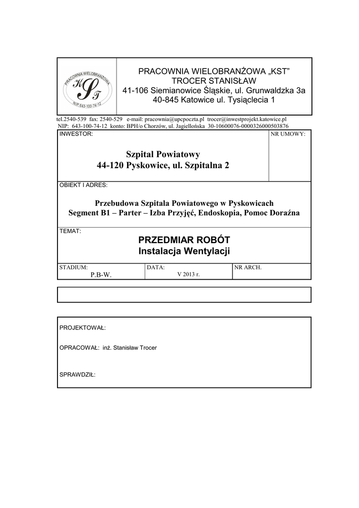 Szpital Powiatowy 44-120 Pyskowice, ul. Szpitalna 2 PRZEDMIAR