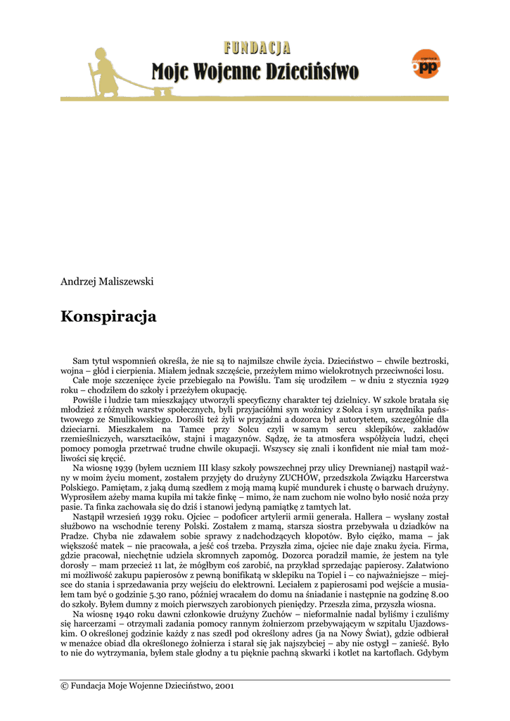 Konspiracja - Fundacja Moje Wojenne Dzieciństwo