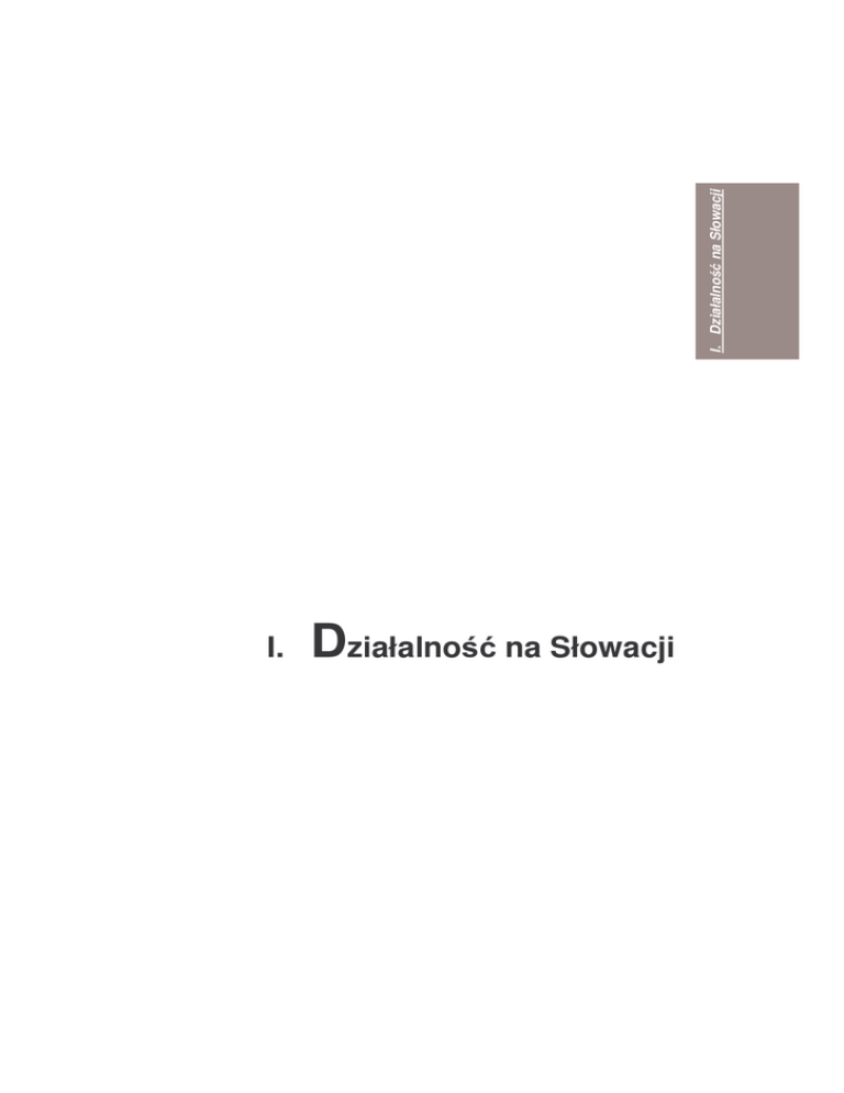 I. Działalno na Słowacji I. Działalno na Słowacji 2 I. Działalno na Słowacji Przed ponad 15 laty Polska i Słowacja rozpocz ły dług drog wej cia do NATO i EU - dzisiaj Polska i Słowacja s pełnoprawnymi członkami EU, NATO i ODCE. Poradnik kooperacji został przygotowany by da ogólny pogl d na obecn sytuacj w Polsce i na Słowacji. Informacje zawarte w poradniku maj charakter ogólny i nie s adresowane do wybranych okoliczno ci czy jakiego szczególnego przypadku oraz nie mo na zagwarantowa , e informacje b d aktualne w przyszło ci. Podejmuj c jakiekolwiek decyzje gospodarcze nale y skonsultowa aktualno regulacji prawnych. Chcemy specjalne słowa podzi kowania skierowa do instytucji b d cych głównymi ródłami do przygotowania tej cz ci poradnika: − Ambasadzie Rzeczypospolitej Polskiej w Bratysławie - Słowacja, Wydział Ekonomiczno-Handlowy – informacje w j zyku polskim i słowackim ul. Zelená 6, 814 26 Bratislava, Republika Słowacka Tel.: 00421/2/5443 27 44, 00421/2/5443 03 35 [email protected] [email protected] − Ambasadzie Republiki Słowackiej - Biuro Radcy w Warszawie – informacje w j zyku polskim i słowackim ul. Litewska 6, 00-581 Warszawa e-mail: [email protected] tel.: 0048 22 525 81 10, fax: 0048 22 625 24 52 www.ambasada-slowacji.pl Handlowego − Głównemu Urz dowi Statystycznemu w Warszawie oraz Urz dowi Statystycznemu w Bielsku-Białej 3 na Słowacji Drogi Czytelniku, dzi kujemy Ci za po wi cony czas przy czytaniu poradnika kooperacji i inwestowania w Polsce i na Słowacji, mamy nadziej , e uzyskane informacje b d dla Ciebie interesuj ce i u yteczne. I. Działalno Przedmowa 4 I. Działalno na Słowacji na Słowacji 1. Słowacja - informacje ogólne .................................................. 7 1.1. Tło historyczne ...........................................................................................7 1.2. Poło enie geograficzne i klimat..................................................................7 1.3. Pa stwo – kraj............................................................................................8 2. Gospodarka, wymiana handlowa, inwestycje ...................... 10 2.1. Sytuacja gospodarcza Słowacji w 2003, 2004 i latach nast pnych.........10 2.2. Poziom konkurencyjno ci polskiego eksportu oraz mo liwo ci jego zwi kszenia ..............................................................................................31 2.3. Integracja Słowacji z Uni Europejsk - okresy przej ciowe Słowacji.....32 2.4. Wspieranie inwestycji krajowych i zagranicznych na terytorium Słowacji ....................................................................................................35 2.5. System Podatkowy na Słowacji ...............................................................41 3. Uruchamianie i prowadzenie działalno ci gospodarczej na Słowacji................................................................................ 51 3.1. Działalno osób fizycznych ....................................................................52 3.2. Działalno osób prawnych......................................................................53 3.3. Formy organizacyjno-prawne prowadzenia działalno ci gospodarczej ...55 3.4. Pozostałe warunki prowadzenia działalno ci gospodarczej ....................60 3.5. Koszty pracy na Słowacji .........................................................................70 4. Informacje u yteczne dla współpracy................................... 70 4.1. Oferty firm słowackich, usługi, badania rynku, współpraca handlowa .....70 4.2. Pracownicy na Słowacji specjalizuj cy si w obrocie handlowym...........72 4.3. EUREK i SOLVIT .....................................................................................73 4.4. Targi i wystawy – Słowacja 2005 .............................................................75 5 I. Działalno SPIS TRE CI 6 I. Działalno na Słowacji na Słowacji 1.1. Tło historyczne Na terenie dzisiejszej Słowacji znanych jest wiele osad ze starszej i młodszej ery kamiennej. W erze br zu tereny Słowacji były miejscem osiedlenia wielu ró nych plemion i grup etnicznych - w ródłach pisanych najcz ciej pojawiaj si notatki o Celtach, Rzymianach i plemionach germa skich. Plemiona słowia skie przyw drowały do doliny Karpat w pi tym i szóstym stuleciu. W tym czasie powstało Pa stwo Sama - najstarszy zachodnio-słowia ski twór pa stwowy. Pod koniec ósmego wieku na Słowacji powstało Ksi stwo Prybiny a na terenach zachodniej Słowacji i południa Moraw wytworzyło si Ksi stwo Mojmira. W latach 813 do 833 nast piło poł czenie obydwu ksi stw co dało podstawy do powstania Rzeszy Wielkomorawskiej, pot nego pa stwa, które stało si murem dla ekspansji Franków. W 863 roku na zaproszenie władcy Wielkiej Morawy na tereny te, z Bizancjum przybyli bracia zakonni Cyryl i Metody, zało yciele pi miennictwa słowia skiego, dzi ki którym j zyk słowia ski zyskał status j zykowy równy łacinie czy grece. Dzisiejsze odkrycia archeologiczne wskazuj na wszechstronnie wysoki poziom rozwoju pa stwa Wielkomorawskiego. Na pocz tku dziesi tego stulecia Wielka Morawa zanika a obszar dzisiejszej Słowacji staje si wkrótce cz ci wczesnofeudalnego pa stwa w gierskiego a nast pnie, pó niej cesarskokrólewskiej monarchii Austro-W gier. W kolejnych latach obszar dzisiejszej Słowacji dotkni ty był najazdami Tatarów (1241 r.) i najazdem tureckim (1526 r.). Turcy opanowali W gry na ponad 150 lat. W latach pó niejszych na obszarze dzisiejszej Słowacji wyst powały powstania antyfeudalne i antyhabsburgskie. W latach 1848-1849 Słowacy wł czyli si do wyzwoleniowych d e narodów znajduj cych si pod panowaniem Austro-W gier; d enia te jednak poniosły kl sk . Wyzwolenie przyniosła dopiero I Wojna wiatowa - w 1918 r. powstaje Republika Czechosłowacka. W 1938 r. na podstawie Układu Monachijskiego na Słowacji powstaje nowy twór pa stwowy - Republika Słowacka, która uznana została m.in