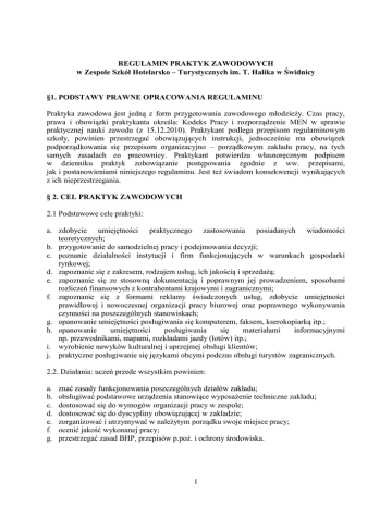 Regulamin praktyk - Zespół Szkół Hotelarsko