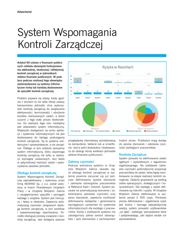 kontroli zarządczej. System pozwala