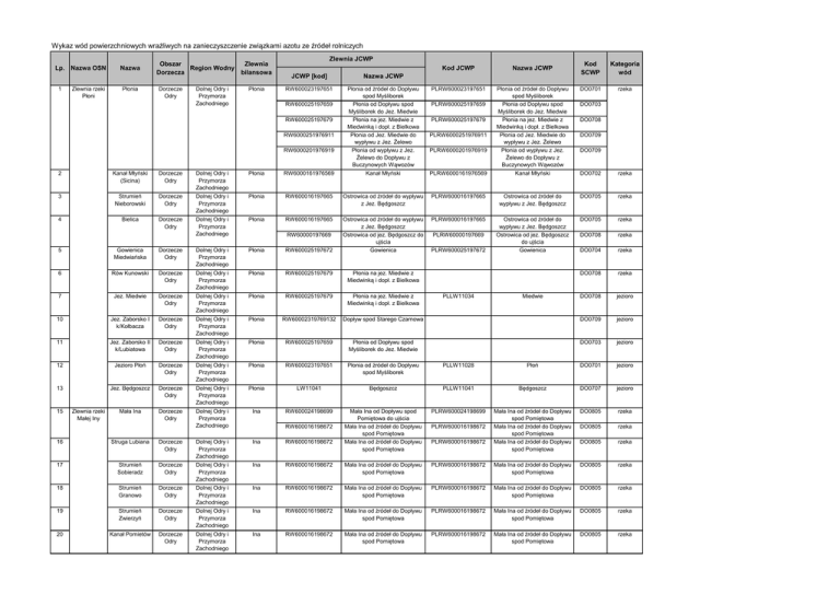 Wykaz wód powierzchniowych wrażliwych na zanieczyszczenie