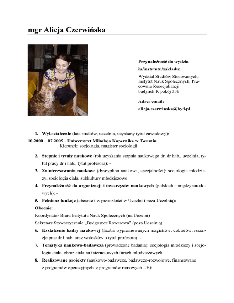 mgr Alicja Czerwińska - Instytut Nauk Społecznych