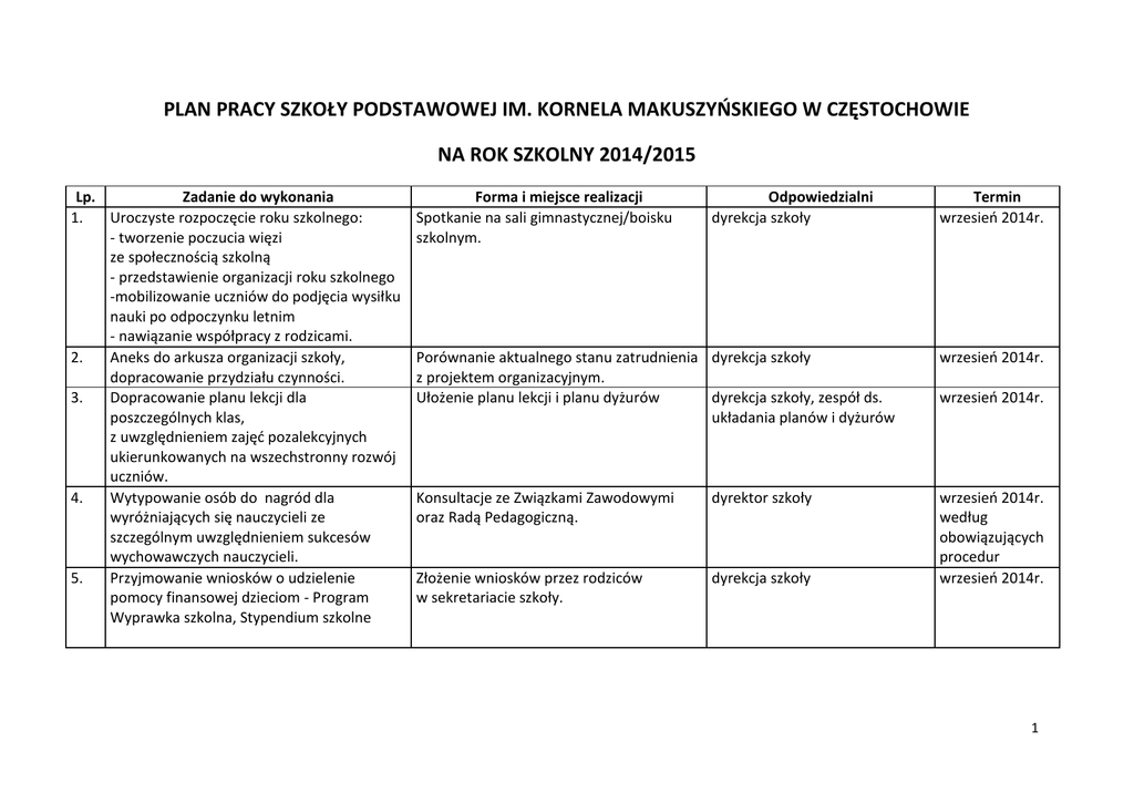 plan pracy szkoły podstawowej im. kornela makuszyńskiego w