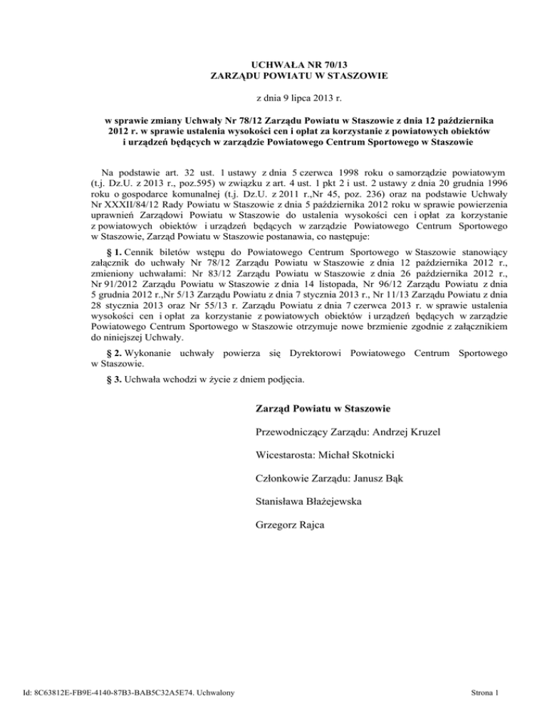 Uchwala Nr 70/13 z dnia 9 lipca 2013 r.