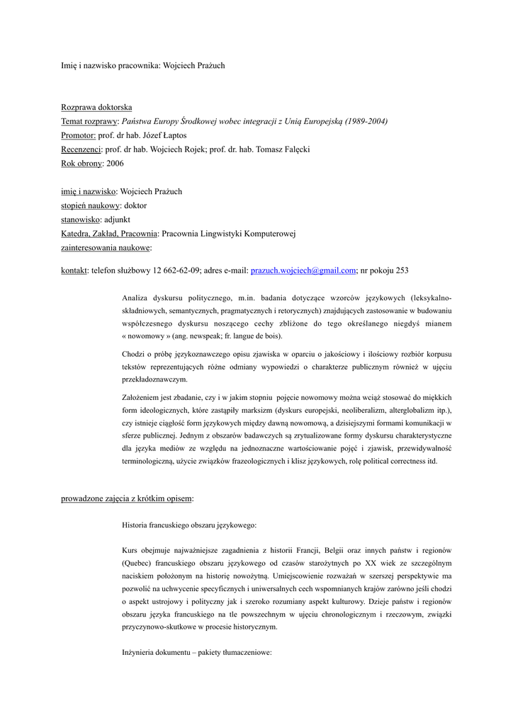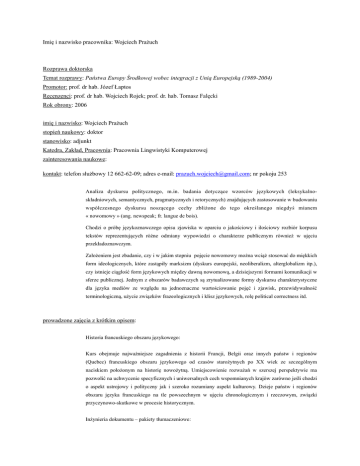Imię i nazwisko pracownika: Wojciech Prażuch Rozprawa doktorska
