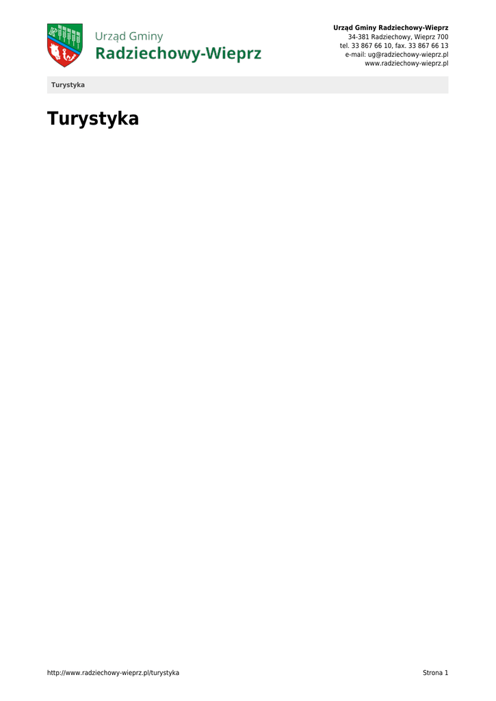 Urząd Gminy Radziechowy-Wieprz 34-381 Radziechowy, Wieprz 700 tel. 33 867 66 10, fax. 33 867 66 13 e-mail: [email protected] www.radziechowy-wieprz.pl Turystyka Turystyka http://www.radziechowy-wieprz.pl/turystyka Strona 1