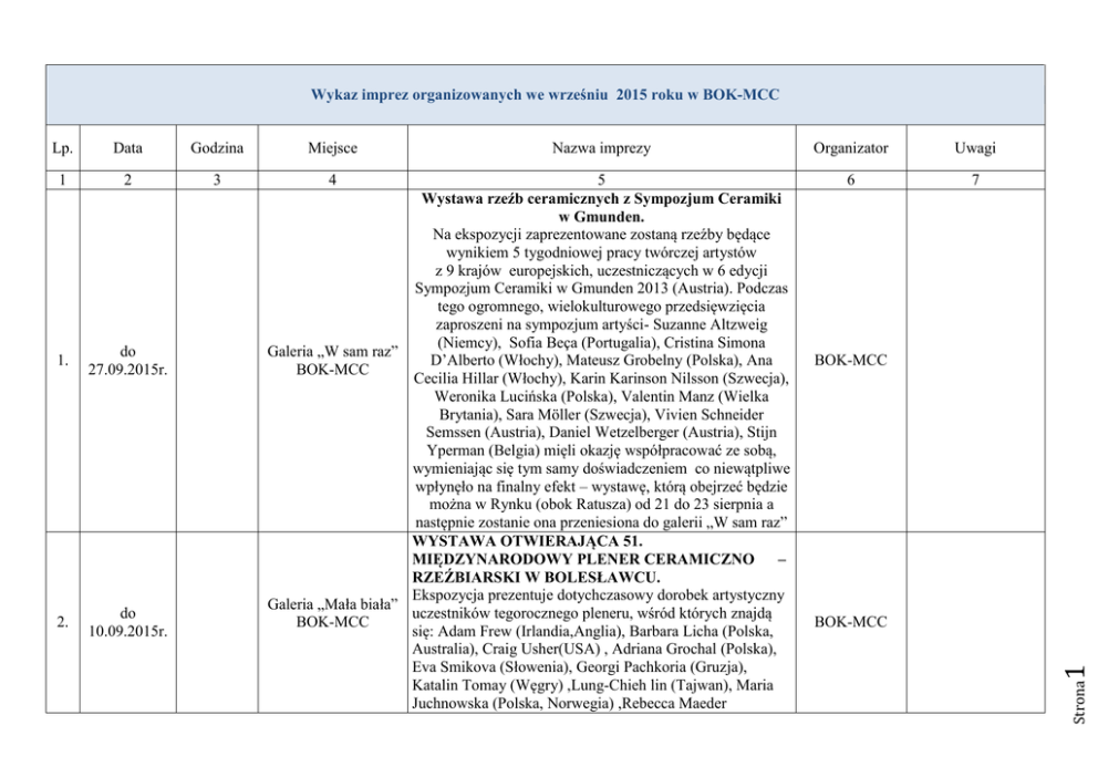 Strona Wykaz imprez organizowanych we wrześniu 2015 - bok-mcc
