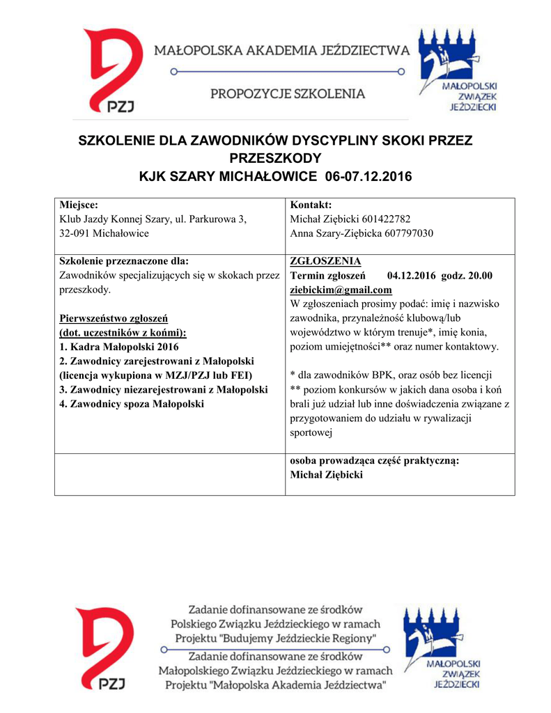SZKOLENIE DLA ZAWODNIKÓW DYSCYPLINY SKOKI PRZEZ