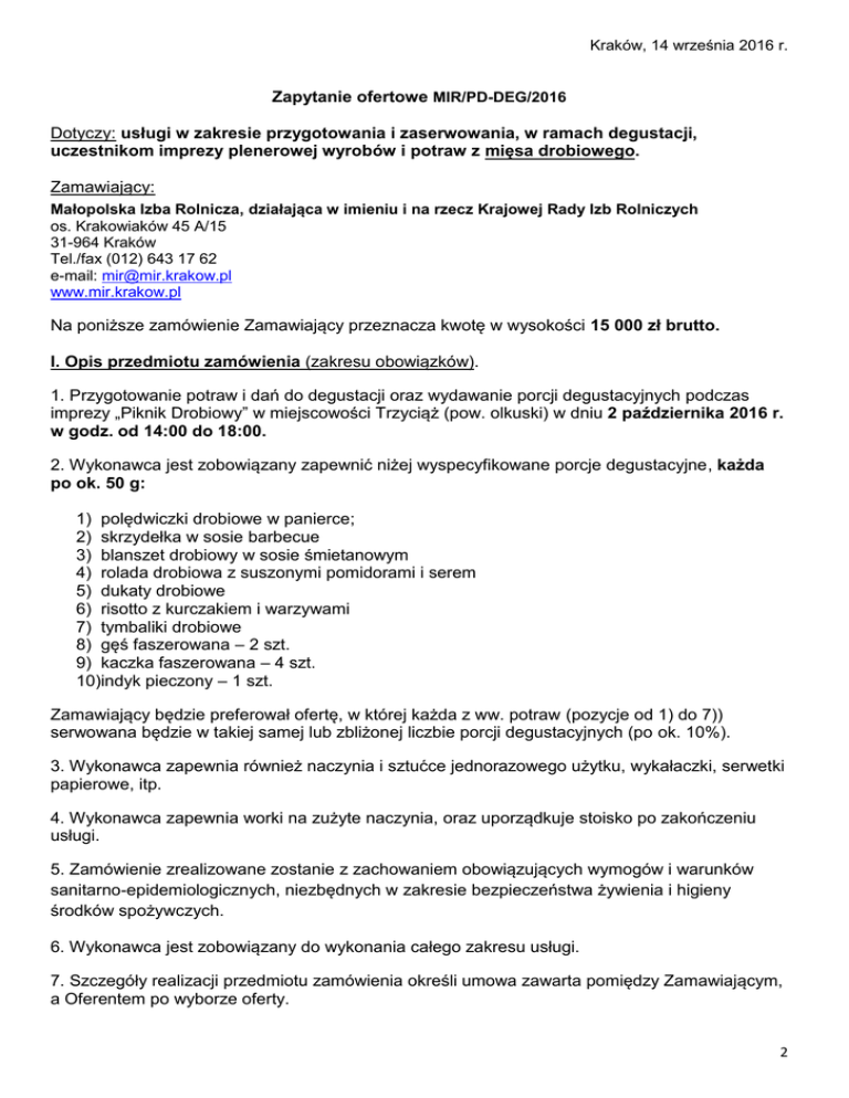 Zapytanie ofertowe - Małopolska Izba Rolnicza