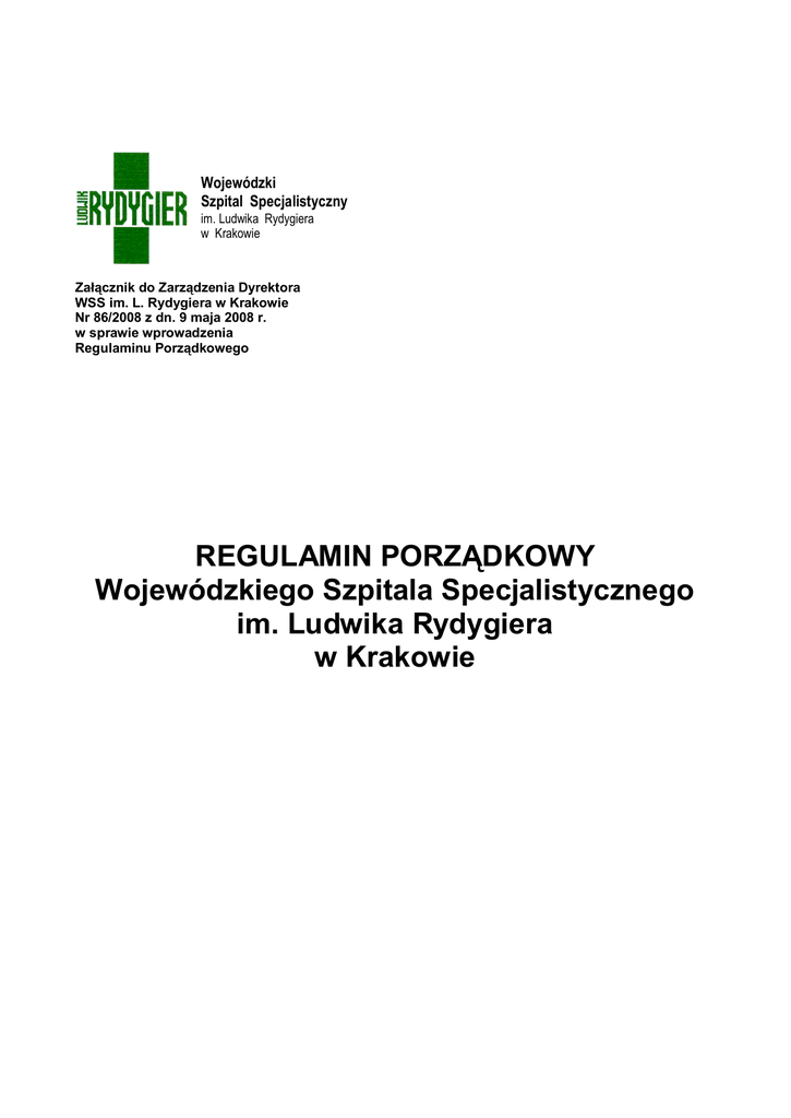 Regulamin porządkowy WSS im. L. Rydygiera w Krakowie