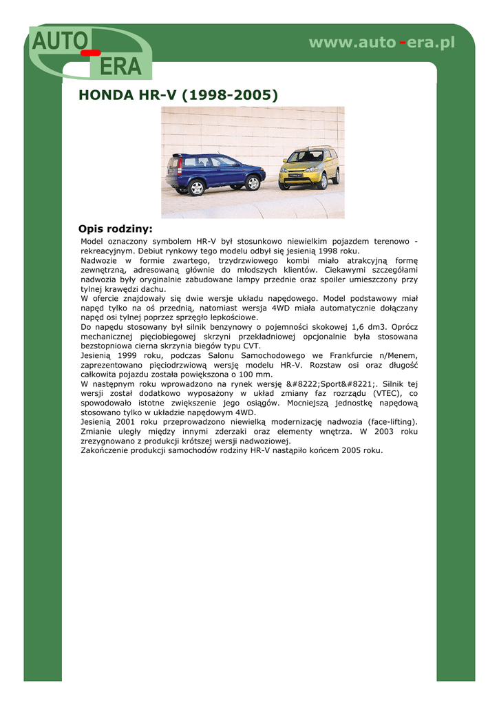 Opis rodziny: HONDA HR-V. - AUTO-ERA