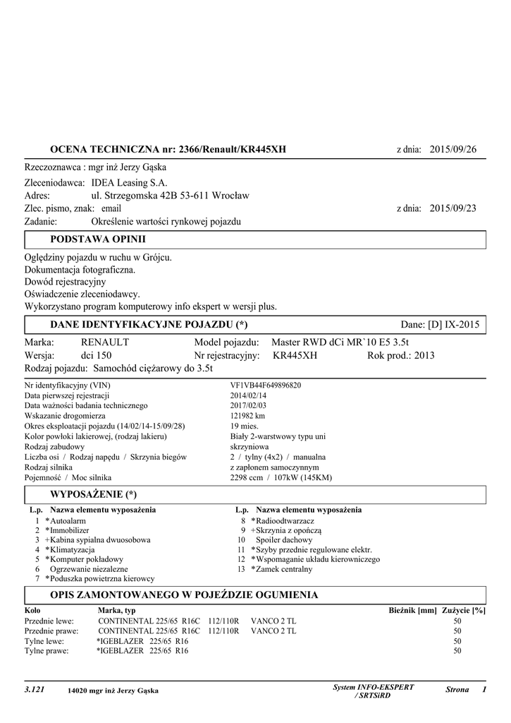 2015/09/26 z dnia: OCENA TECHNICZNA nr: 2366/Renault