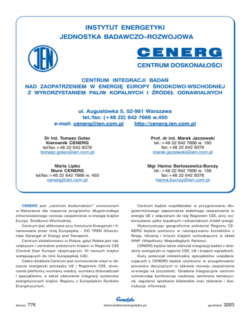 INSTYTUT ENERGETYKI JEDNOSTKA BADAWCZO–ROZWOJOWA CENERG CENTRUM DOSKONAŁOŚCI CENTRUM INTEGRACJI BADAŃ NAD ZAOPATRZENIEM W ENERGIĘ EUROPY ŚRODKOWO-WSCHODNIEJ Z WYKORZYSTANIEM PALIW KOPALNYCH I ŹRÓDEŁ ODNAWIALNYCH ul. Augustówka 5, 02-981 Warszawa tel./fax: (+48 22) 642 7666 w.450 e-mail: [email protected] http://cenerg.ien.com.pl Dr inż. Tomasz Golec Kierownik CENERG tel/fax:+48 22 642 8378 [email protected] Prof. dr inż. Marek Jaczewski tel.:+48 22 642 7666 w. 160 fax:+48 22 642 8376 [email protected] Maria Lipko Biuro CENERG tel/fax:+48 22 642 7666 w. 450 [email protected] Mgr Hanna Bartoszewicz-Burczy tel.:+48 22 642 7666 w. 158 fax:+48 22 642 8376 [email protected] CENERG jest centrum doskona³oci utworzonym w Warszawie dla wsparcia programów d³ugotrwa³ego zrównowa¿onego rozwoju zaopatrzenia w energiê krajów Europy rodkowo-Wschodniej. Centrum jest afiliowane przy Instytucie Energetyki i finansowane przez Uniê Europejsk¹ DG TREN (Directoriate Genergal of Energy and Transport). Centrum zlokalizowano w Polsce, gdy¿ Polska jest najwiêkszym i centralnie po³o¿onym krajem w Regionie CEE (Central East Europe) obejmuj¹cym 10 nowych krajów wstêpuj¹cych do Unii Europejskiej (UE). Celem dzia³ania Centrum jest wzmocnienie wiêzi w obszarze energetyki pomiêdzy UE i Regionem CEE, stworzenie platformy wymiany wiedzy, wymiany dowiadczeñ i specjalistów, a tak¿e u³atwienie integracji systemów energetycznych krajów Regionu z Europejskim Rynkiem Energetycznym. Centrum bêdzie wspó³dzia³aæ w przygotowaniu d³ugoterminowego zapewnienia stabilnego zaopatrzenia w energiê UE z w³¹czonym do niej Regionem CEE, przy wykorzystaniu paliw kopalnych i odnawialnych róde³ energii. Wykorzystuj¹c geograficzne po³o¿enie Regionu CENERG bêdzie pomocny w nawi¹zywaniu kontaktów z Rosj¹, Ukrain¹ i innymi krajami wchodz¹cymi w sk³ad WNP (Wspólnoty Niepodleg³ych Pañstw). CENERG bêdzie tak¿e u³atwia³ integracjê badañ z dziedziny energetyki w regionie CEE, UE i krajach s¹siednich. Du¿y potencja³ intelektualny specjalistów wspó³pracuj¹cych z CENERG bêdzie u¿yteczny w przygotowaniu procesów decyzyjnych w zakresie rozwoju zaopatrzenia w energiê na przysz³oæ. Dzia³ania integracyjne centrum wzmacniaj¹ konferencje naukowe, seminaria tematyczne, regularne spotkania bilateralne oraz zbieranie i dystrybucja informacji. strona 776 www.elektroenergetyka.pl grudzień 2003 Prof.dr in¿. Marek Jaczewski Dr in¿. Tomasz Golec CENERG Prace nad strategi¹ energetyczn¹ dla Europy rodkowo-Wschodniej Unia Europejska zatwierdzi³a wniosek Polski zawieraj¹cy propozycjê utworzenia przy Instytucie Energetyki w Warszawie tzw. Centrum Doskona³oci, które przygotuje propozycjê strategii energetycznej dla dziesiêciu krajów rodkowo-Wschodniej Europy (ang. Central East Europe, st¹d skrót CEE), które zg³osi³y zamiar wst¹pienia do Unii Europejskiej (UE). S¹ to: 1. 2. 3. 4. 5. Bu³garia (BG) Republika Czeska (CZ) Estonia (EST) Wêgry (H) Litwa (LIT) 6. 7. 8. 9. 10. £otwa (LAT) Polska (PL) Rumunia (R) S³owacja (SK) S³owenia (SL) Wszystkie te kraje w ostatnich latach przesz³y tzw. transformacjê ekonomiczn¹ od gospodarki centralnie sterowanej do gospodarki rynkowej i w zwi¹zku z tym maj¹ wiele wspólnych dowiadczeñ historycznych z ostatnich lat. Bliska wspó³praca miêdzy tymi krajami w zakresie energetyki zosta³a rozpoczêta w ramach wiatowej Rady Energetycznej (WEC World Energy Council) ju¿ w 1990 r. Do Regionu CEE nale¿a³y ponadto kraje by³ej Jugos³awii poza S³oweni¹. Do krajów nowo wstêpuj¹cych do Unii Europejskiej nale¿¹ jeszcze Cypr i Malta z rejonu Morza ródziemnego, ale ich historia by³a zupe³nie inna ni¿ wymienionej dziesi¹tki. Na rysunku 1 pokazano usytuowanie krajów Regionu w Europie. Jak widaæ po³o¿ony on jest w rodku Europy pomiêdzy bogat¹ w zasoby surowców energetycznych Rosj¹ i zu¿ywaj¹c¹ du¿e iloci energii Europ¹ Zachodni¹. W tej sytuacji przez Region CEE bêd¹ przep³ywaæ tranzyty energii zarówno w kierunkach wschód-zachód (przep³yw surowców energetycznych g³ównie ropy naftowej i gazu oraz przep³ywy energii elektrycznej w celu wyrównywania dobowych szczytów obci¹¿enia) jak i pó³noc-po³udnie (w celu wyrównywania sezonowych zmian obci¹¿enia na ogrzewanie w zimie i klimatyzacjê latem). Rys. 1. Po³o¿enie Regionu CEE w Europie grudzień 2003 www.elektroenergetyka.pl strona 777 W tabeli 1 podano wybrane dane charakteryzuj¹ce kraje Regionu. Tabela 1 Podstawowe dane o Regionie za 2000 r. (ród³a:[2],[3],[4]) 1) 2) 3) 4) TPES - Total Primary Energy Supply - ca³kowite zu¿ycie energii pierwotnej 1Mtoe = 11,63 TWh (ekwiwalent miliona ton ropy naftowej (przypis redakcji) PKB Produkt Krajowy Brutto w mld USD95 wg si³y nabywczej z³otego, a nie kursu wymiany bankowej Dane z 1999 r. Przyst¹pienie do Unii Europejskiej G³ównym zadaniem CENERG jest zaproponowanie za³o¿eñ takiej strategii energetycznej dla dziesiêciu nowo wstêpuj¹cych krajów, która zapewni³aby na przysz³oæ stabilne zaopatrzenie tych krajów w energiê i w³¹czy³a je do wspólnego europejskiego rynku energetycznego. Unia Europejska jest obecnie w znacznej mierze uzale¿niona od importu energii, g³ównie z Bliskiego Wschodu i Rosji. Obecnie import energii w bilansie energetycznym UE stanowi ok. 50%, a oczekuje siê, ¿e wzronie do 2030 r. do ok. 70%. UE na import energii wydaje obecnie rocznie ok. 240 mld euro [1]. Obecne zapotrzebowanie energii przez kraje Unii Europejskiej jest pokrywane w 41% przez paliwa ciek³e, w 22% gaz ziemny, a w 16% przez paliwa sta³e, w 15% energiê j¹drow¹ i ok. 6% przez odnawialne ród³a energii (RES). Jeli nic nie zostanie zrobione, to w 2030 r. struktura bilansu pozostanie podobna: 38% paliwa ciek³e, 29% gaz ziemny, 19% paliwa sta³e, 8% RES i ok. 6% energia j¹drowa. D³ugofalowa strategia Unii Europejskiej [1] zawiera poni¿ej wymienione g³ówne tezy i postulaty. 1. Unia Europejska musi