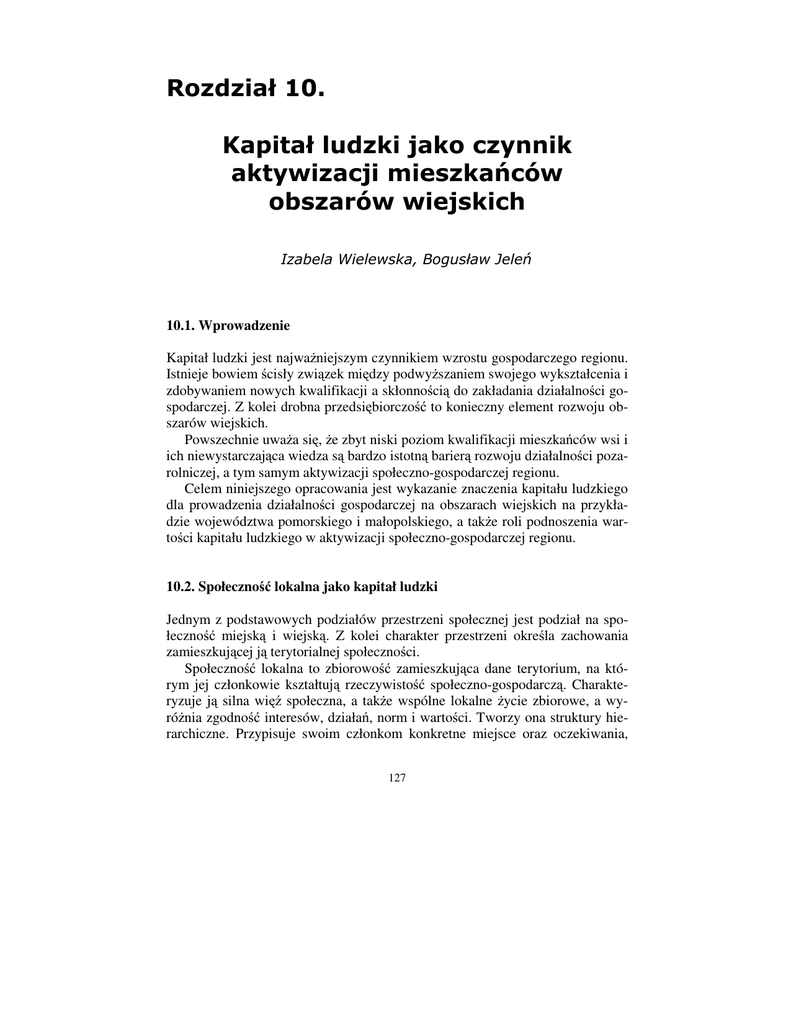 Rozdziaˇ 10. Kapitaˇ ludzki jako czynnik aktywizacji mieszka ców