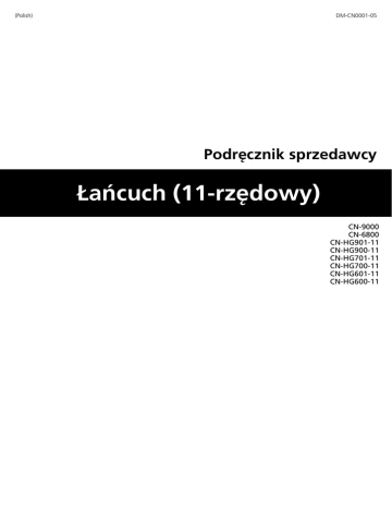 (Polish) DM-CN0001-05 Podręcznik sprzedawcy Łańcuch (11-rzędowy) CN-9000 CN-6800 CN-HG901-11 CN-HG900-11 CN-HG701-11 CN-HG700-11 CN-HG601-11 CN-HG600-11 SPIS TREŚCI WAŻNA INFORMACJA .......................................................................................................................... 3 ABY ZAPEWNIĆ BEZPIECZEŃSTWO ..................................................................................................... 4 MONTAŻ ............................................................................................................................................... 8 Sposób użycia ................................................................................................................................................. 8 Długość łańcucha ............................................................................................................................................ 9 Przerzutka tylna do rowerów SZOSOWYCH..............................................................................................................................9 PRZERZUTKA TYLNA DO ROWERÓW GÓRSKICH (MTB/Trekking) ............................................................................................9 2 WAŻNA INFORMACJA WAŻNA INFORMACJA Ten podręcznik sprzedawcy jest przeznaczony głównie dla zawodowych mechaników rowerowych. Użytkownicy, którzy nie zostali profesjonalnie przeszkoleni do montażu rowerów, nie powinni samodzielnie zajmować się montażem komponentów, korzystając z podręcznika sprzedawcy. Jeśli jakiekolwiek informacje umieszczone w tym podręczniku nie są zrozumiałe, nie należy kontynuować montażu. Aby uzyskać pomoc, należy skontaktować się z punktem sprzedaży lub sprzedawcą roweru. Należy przeczytać wszystkie instrukcje obsługi dołączone do produktu. Nie wolno demontować ani modyfikować produktu w sposób inny niż podano w informacjach znajdujących się w tym podręczniku sprzedawcy. Wszystkie podręczniki sprzedawcy i instrukcje obsługi można przeglądać w trybie online na naszej stronie internetowej (http://si.shimano.com). Należy przestrzegać odpowiednich przepisów i regulacji prawnych danego kraju lub regionu, w którym podmiot prowadzi działalność jako sprzedawca. Ze względów bezpieczeństwa należy dokładnie zapoznać się z niniejszym podręcznikiem sprzedawcy przed użyciem produktu i przestrzegać go podczas jego użytkowania. Aby zapobiec obrażeniom oraz uszkodzeniom wyposażenia i otoczenia, należy zawsze przestrzegać poniższych instrukcji. Instrukcje zostały sklasyfikowane zgodnie ze stopniem niebezpieczeństwa lub wielkością możliwych szkód, które mogą wynikać z nieprawidłowego użytkowania produktu. NIEBEZPIECZEŃSTWO Niezastosowanie się do podanych instrukcji skutkuje śmiercią albo poważnymi obrażeniami. OSTRZEŻENIE Niezastosowanie się do podanych instrukcji może skutkować śmiercią albo poważnymi obrażeniami. PRZESTROGA Niezastosowanie się do podanych instrukcji może skutkować obrażeniami albo uszkodzeniami wyposażenia i otoczenia. 3 ABY ZAPEWNIĆ BEZPIECZEŃSTWO Montaż na rowerze i konserwacja: ABY ZAPEWNIĆ BEZPIECZEŃSTWO Do łączenia łańcucha używać wyłącznie modeli narzędzi i sworzni łączących wymienionych w tabeli. Gdy zastosowano nieodpowiednie sworznie lub użyto nieodpowiedniego narzędzia do danego typu łańcucha, połączenie łańcucha może być zbyt słabe, co może spowodować rozerwanie lub spadanie łańcucha. OSTRZEŻENIE Podczas montażu produktu należy przestrzegać procedur zawartych w instrukcji. Zalecamy stosowanie jedynie oryginalnych części Shimano. Poluzowanie lub uszkodzenie takich części, jak śruby i nakrętki może spowodować spadnięcie z roweru i poważne obrażenia. Ponadto, jeśli regulacje nie zostaną wykonane prawidłowo, może to spowodować spadnięcie z roweru i poważne obrażenia. Łańcuch 11-rzędowa CN-9000/6800/HG901-11/ HG900-11/HG701-11/HG700-11/ HG601-11/HG600-11 Sworzeń łączący Przed wykonaniem czynności konserwacyjnych, np. wymiany części, należy założyć okulary ochronne lub gogle. 1 5,8mm Po uważnym przeczytaniu niniejszego podręcznika sprzedawcy należy zachować go na przyszłość. Narzędzie TL-CN34, TL-CN28 Jeżeli konieczne jest wyregulowanie długości łańcucha z powodu zmiany liczby zębów zębatek, należy skrócić łańcuch w innym miejscu niż miejsce, w którym łańcuch został połączony, za pomocą wzmocnionego sworznia łączącego. Łańcuch zostanie uszkodzony, jeżeli zostanie skrócony w miejscu, gdzie jest połączony za pomocą wzmocnionego sworznia łączącego. Należy również przekazać użytkownikom następujące informacje: Okresy między przeglądami zależą od intensywności i środowiska użytkowania. Łańcuch należy czyścić regularnie, używając odpowiedniego środka do czyszczenia łańcucha. Nigdy nie stosować rozpuszczalników na bazie kwasów ani zasad, takich jak odrdzewiacze. Użycie takiego rozpuszczalnika może spowodować zerwanie łańcucha i w konsekwencji poważne obrażenia. Sprawdzić, czy łańcuch nie jest uszkodzony (deformacje, pęknięcia lub korozja), czy występuje wydłużenie wywołane zużyciem, przeskakiwanie lub czy występują inne nieprawidłowości, np. samoistna zmiana przełożeń. W przypadku występowania jakichkolwiek problemów należy skontaktować się ze sprzedawcą lub punktem sprzedaży. Jazda na rowerze w takim stanie może spowodować zerwanie łańcucha i upadek, co z kolei może być przyczyną poważnych obrażeń. (A) Sworzeń ogniwa (B) Wzmocniony sworzeń łączący Ponownie dopasowując długość łańcucha, upewnij się, że sworzeń łączący łańcuch wkładasz z tej samej strony, z której umieściłeś wypinacz łańcucha (ten sam kierunek, z którego łańcuch został skrócony). 4 ABY ZAPEWNIĆ BEZPIECZEŃSTWO Upewnij się, że sworzeń łączący znajduje się w pozycji przed