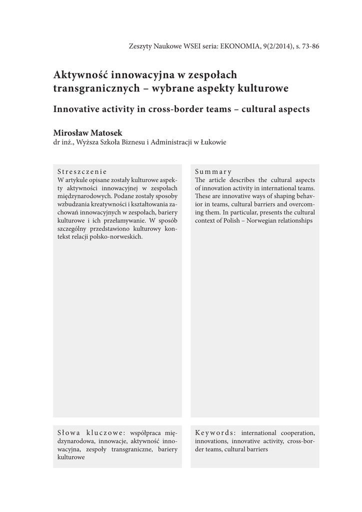 Aktywność innowacyjna w zespołach transgranicznych – wybrane