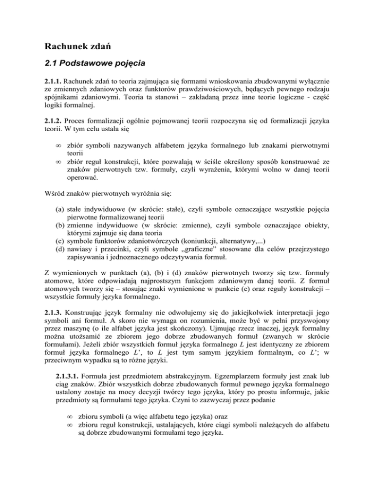 2.1.2. Proces formalizacji ogólnie pojmowanej teorii rozpoczyna się od formalizacji języka