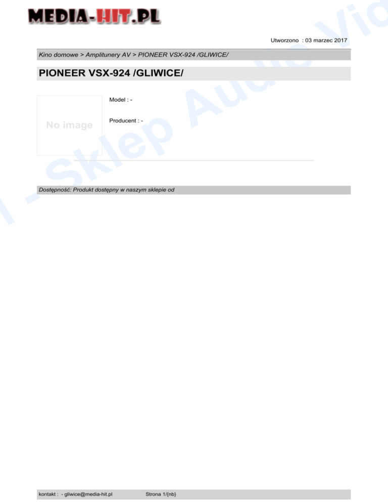 o i d d i V Utworzono : 03 marzec 2017 Kino domowe > Amplitunery AV > PIONEER VSX-924 /GLIWICE/ PIONEER VSX-924 /GLIWICE/ Model : - No image l p p le Producent : - k S Dostępność: Produkt dostępny w naszym sklepie od kontakt : - [email protected] Strona 1/{nb} u A