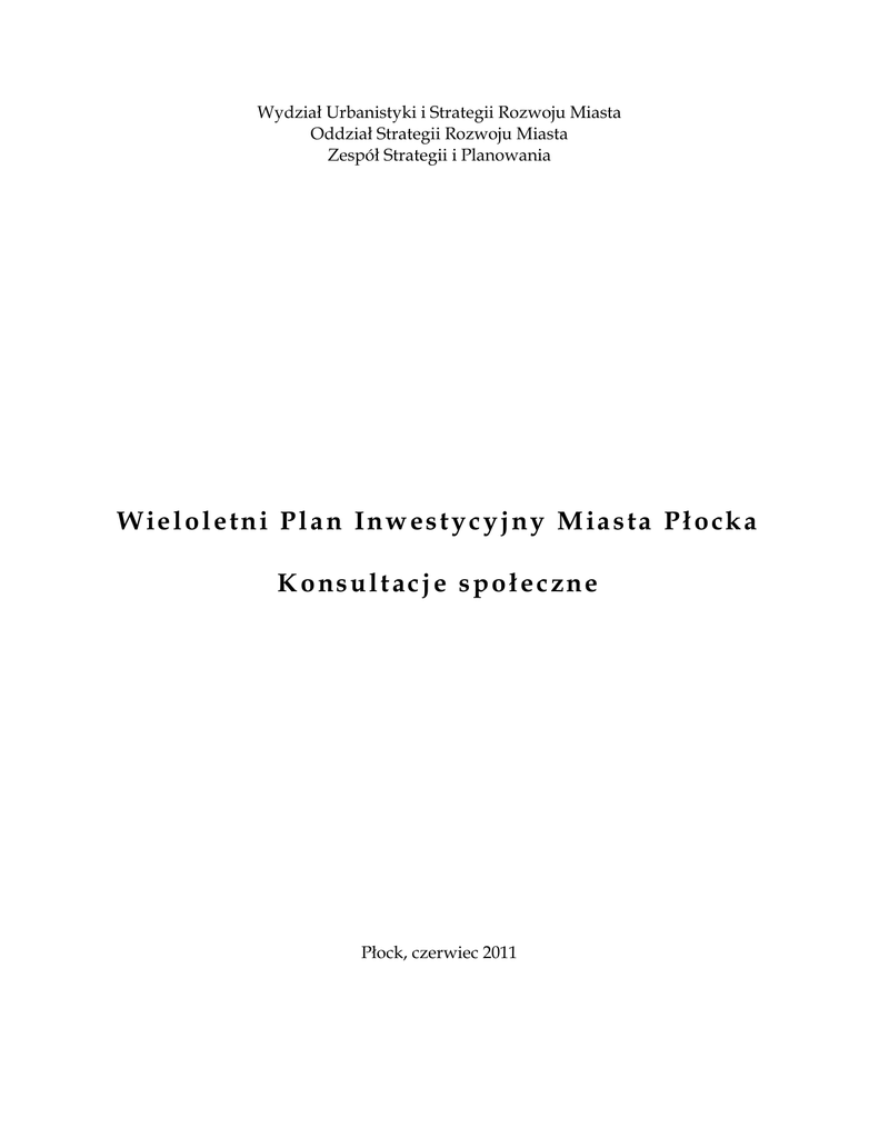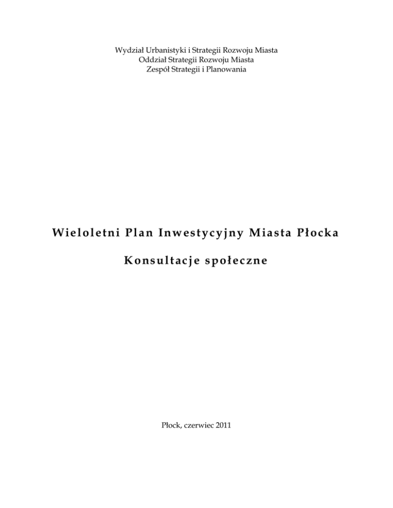 Wieloletni Plan Inwestycyjny Miasta Płocka Konsultacje społeczne