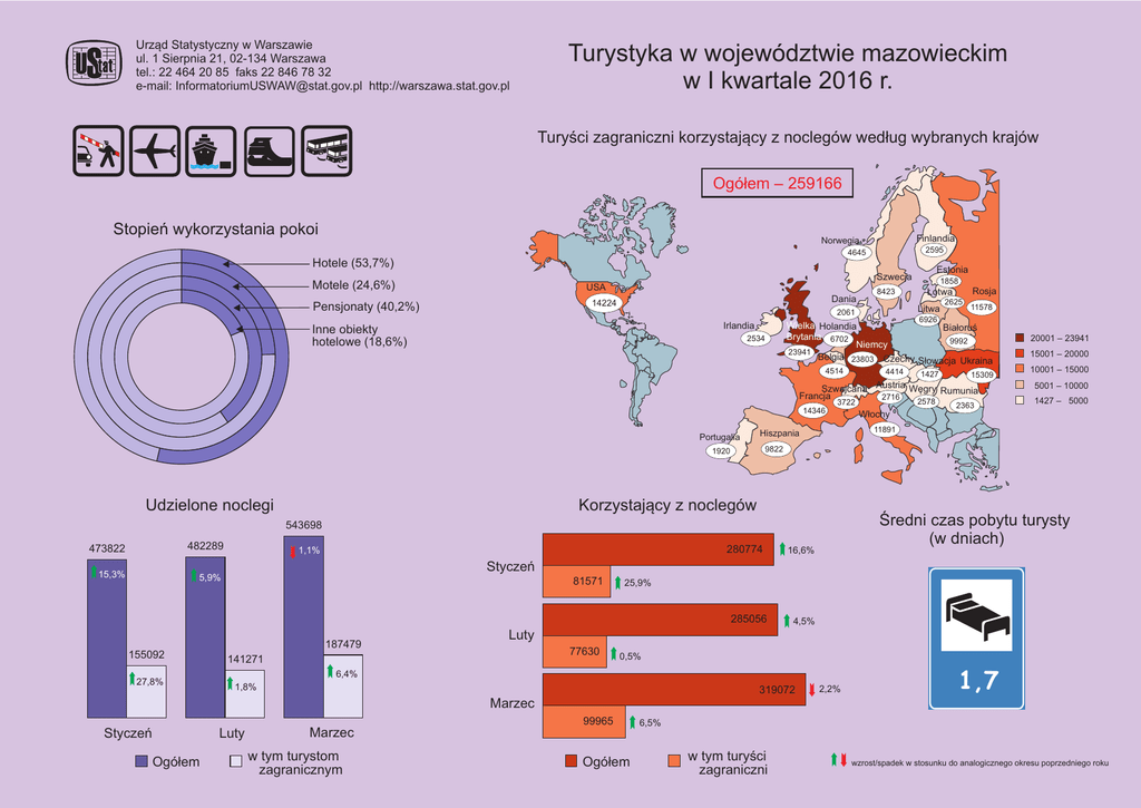 Turystyka w woj. mazowieckim i Warszawie, I kwartał 2016 r.