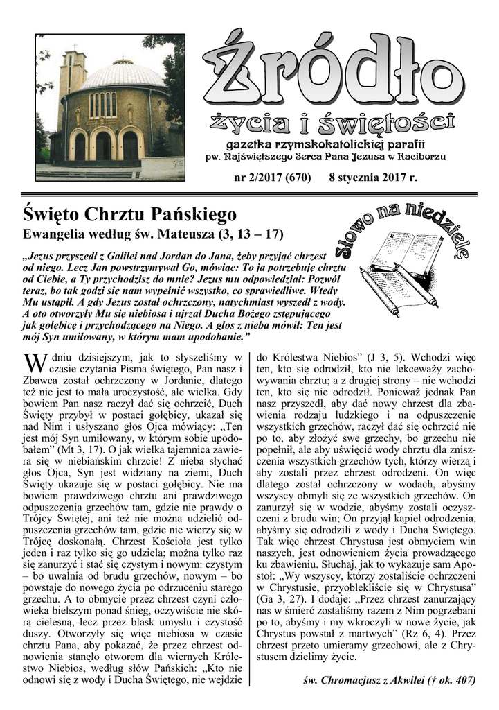 Święto Chrztu Pańskiego - Strona Parafii NSPJ w Raciborzu