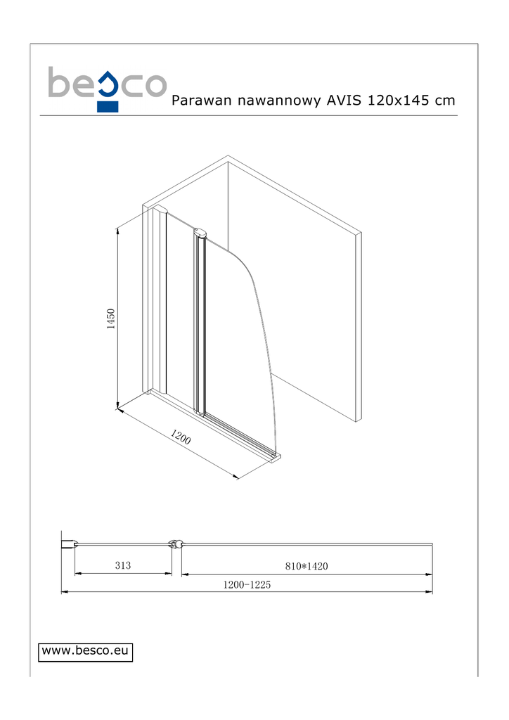1450 Parawan nawannowy AVIS 120x145 cm 12 00 313 810*1420 1200-1225 www.besco.eu