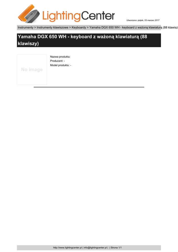 Utworzono: piątek, 03 marzec 2017 Instrumenty > Instrumenty klawiszowe > Keyboardy > Yamaha DGX 650 WH - keyboard z ważoną klawiaturą (88 klawiszy Yamaha DGX 650 WH - keyboard z ważoną klawiaturą (88 klawiszy) Nazwa produktu: Producent: Model produktu: - No image http://www.lightingcenter.pl | [email protected] | | Strona 1/1