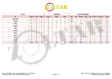 Team 0 TRAFIENIA ZUŻYTA AMUNICJA ID zginał trafił bilans