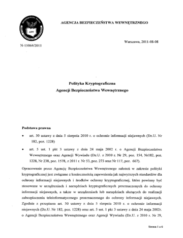 Polityka kryptograficzna - Agencja Bezpieczeństwa Wewnętrznego
