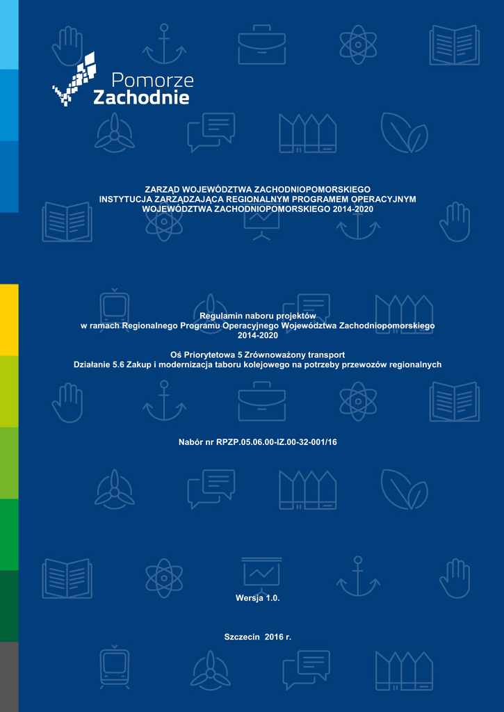 ZARZĄD WOJEWÓDZTWA ZACHODNIOPOMORSKIEGO INSTYTUCJA ZARZĄDZAJĄCA REGIONALNYM PROGRAMEM OPERACYJNYM WOJEWÓDZTWA ZACHODNIOPOMORSKIEGO 2014-2020 Regulamin naboru projektów w ramach Regionalnego Programu Operacyjnego Województwa Zachodniopomorskiego 2014-2020 Oś Priorytetowa 5 Zrównoważony transport Działanie 5.6 Zakup i modernizacja taboru kolejowego na potrzeby przewozów regionalnych Nabór nr RPZP.05.06.00-IZ.00-32-001/16 Wersja 1.0. Szczecin 2016 r. Regulamin naboru projektów w ramach Regionalnego Programu Operacyjnego Województwa Zachodniopomorskiego 2014 – 2020 Działanie 5.6 Spis treści WYKAZ SKRÓTÓW ........................................................................................................................... 4 SŁOWNIK POJĘĆ .............................................................................................................................. 4 PODSTAWY PRAWNE ...................................................................................................................... 6 ROZDZIAŁ 1 PRZEDMIOT NABORU I WARUNKI UCZESTNICTWA .............................................. 8 1.1 PRZEDMIOT I FORMA NABORU ORAZ INSTYTUCJA ORGANIZUJĄCA NABÓR ......................................... 8 1.2 TYPY PROJEKTÓW, ZASADY PRZYZNAWANIA DOFINANSOWANIA I WYŁĄCZENIA Z MOŻLIWOŚCI DOFINANSOWANIA .............................................................................................................................. 8 1.3 PODMIOTY UPRAWNIONE DO UBIEGANIA SIĘ O DOFINANSOWANIE ..................................................... 9 1.4 USŁUGI PUBLICZNE W TRANSPORCIE ZBIOROWYM........................................................................... 9 ROZDZIAŁ 2 ZASADY FINANSOWANIA ........................................................................................ 11 2.1 KWOTA PRZEZNACZONA NA DOFINANSOWANIE PROJEKTÓW W NABORZE ........................................ 11 2.2 MAKSYMALNY POZIOM DOFINANSOWANIA ORAZ MAKSYMALNA KWOTA DOFINANSOWANIA ................ 11 PROJEKTU. ....................................................................................................................................... 11 2.3 ŹRÓDŁA FINANSOWANIA PROJEKTU.............................................................................................. 11 2.4 PROJEKTY GENERUJĄCE DOCHÓD ............................................................................................... 11 2.5 POMOC PUBLICZNA ..................................................................................................................... 12 ROZDZIAŁ 3 KWALIFIKOWALNOŚĆ WYDATKÓW ....................................................................... 12 3.1 RAMY CZASOWE KWALIFIKOWALNOŚCI ......................................................................................... 12 3.2 W ARUNKI I OCENA KWALIFIKOWALNOŚCI WYDATKU ....................................................................... 13 3.3 ZASADA FAKTYCZNEGO PONIESIENIA WYDATKU ............................................................................ 14 3.4 ZAKAZ PODWÓJNEGO FINANSOWANIA .......................................................................................... 15 3.5 W YDATKI KWALIFIKOWALNE W NABORZE. ..................................................................................... 15 3.6 PRZYKŁADOWE WYDATKI NIEKWALIFIKOWALNE W NABORZE. ......................................................... 17 ROZDZIAŁ 4 WSKAŹNIKI ................................................................................................................ 19 ROZDZIAŁ 5 WNIOSEK O DOFINANSOWANIE ........................................................................... 20 ROZDZIAŁ 6 TERMIN, FORMA I MIEJSCE SKŁADANIA WNIOSKÓW O DOFINANSOWANIE.. 21 6.1 TERMIN SKŁADANIA WNIOSKÓW O DOFINANSOWANIE .................................................................... 21 6.2 FORMA I MIEJSCE SKŁADANIA WNIOSKÓW O DOFINANSOWANIE ...................................................... 22 ROZDZIAŁ 7 PROCEDURA WYBORU PROJEKTÓW ................................................................... 23 7.1 CZAS TRWANIA OCENY ................................................................................................................ 23 7.2 ZASADY OGÓLNE PROCESU WYBORU PROJEKTÓW ........................................................................ 23 7.2.1 OCENA WSTĘPNA .................................................................................................................... 25 7.2.2 OCENA MERYTORYCZNA I STOPNIA .......................................................................................... 26 2/34 Regulamin naboru projektów w ramach Regionalnego Programu Operacyjnego Województwa Zachodniopomorskiego 2014 – 2020 Działanie 5.6 7.3 INFORMACJA O WYNIKACH OCENY ............................................................................................... 28 ROZDZIAŁ 8 PODJĘCIE DECYZJI O DOFINANSOWANIU ........................................................... 28 ROZDZIAŁ 9 ZASADY DOTYCZĄCE REALIZACJI PROJEKTU .................................................... 29 9.1 ROZLICZENIE PROJEKTU I WYPŁATA DOFINANSOWANIA.................................................................. 29 9.2 ZMIANY W PROJEKCIE ................................................................................................................. 30 9.3 PROWADZENIE WYODRĘBNIONEJ EWIDENCJI KSIĘGOWEJ .............................................................. 30 9.4 PONOSZENIE WYDATKÓW W RAMACH PROJEKTU .......................................................................... 31 9.5 KONTROLA PROJEKTU................................................................................................................. 31 9.6 TRWAŁOŚĆ PROJEKTU ................................................................................................................ 31 9.7 PROMOCJA PROJEKTU ..........................................