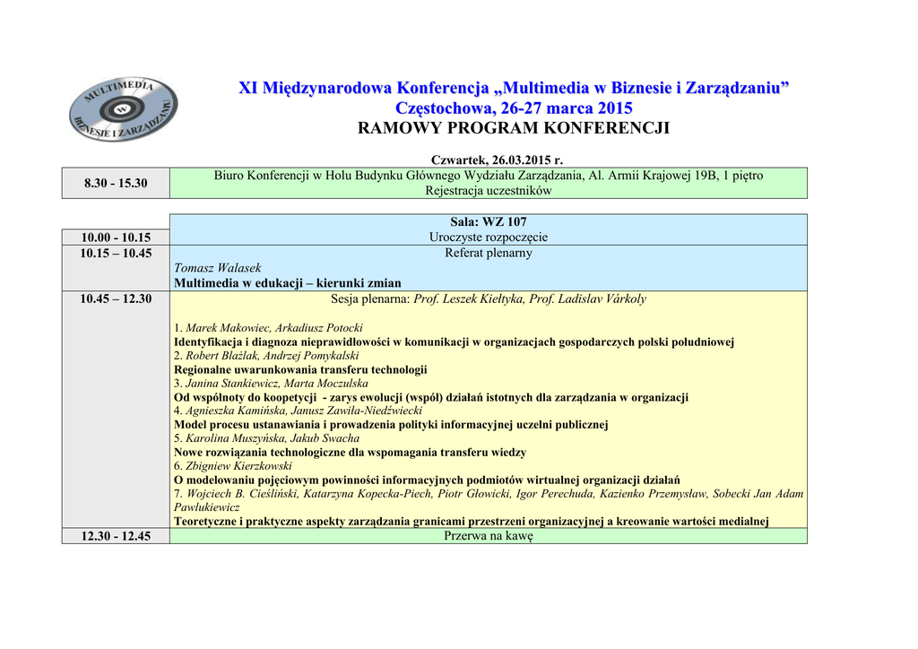 ramowy program konferencji - Multimedia w Biznesie i Zarządzaniu