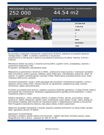 252 000 44.54 m2 - 360 Nieruchomości Szczecin