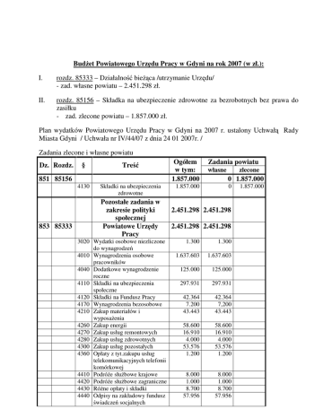 Budżet Powiatowego Urzędu Pracy w Gdyni na rok 2007 (w zł.): I