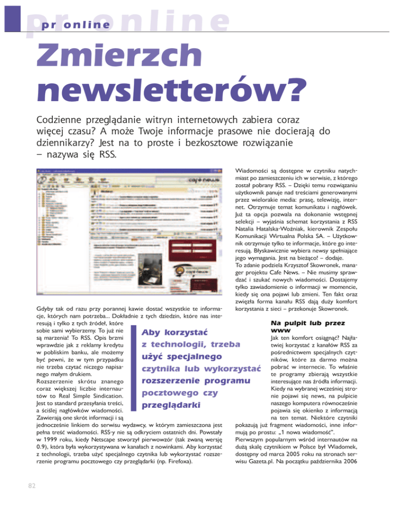 pr online Zmierzch newsletterów? pr online ,XMcRNWWN Y[cNPUMJWRN `R][bW RW]N[WN]X`bLQ cJKRN[J LX[Jc `R¢LNS LcJ\^( * VXŖN =`XSN RWOX[VJLSN Y[J\X`N WRN MXLRN[JS MX McRNWWRTJ[cb( 3N\] WJ ]X Y[X\]N R KNcTX\c]X`N [Xc`RcJWRN o WJcb`J \R¢ ;<< BTLOZXZĦNT ^Ù OZ^_í[YP b Ned_YTV` YL_dNS XTL^_[ZeLXTP^eNePYT`TNSb^P]bT^TPeV_Ç]PRZ eZ^_Lč [ZM]LYd =>> w /eTíVT _PX` ]ZebTÙeLYT` `Ňd_VZbYTV[LY`UPYLO_]PĦNTLXTRPYP]ZbLYdXT []ePe bTPWZ]LVTP XPOTL% []L^í _PWPbTeUí TY_P] YP_ :_]edX`UP _PXL_ VZX`YTVL_` T YLRčÇbPV 5`Ň _L Z[NUL [ZebLWL YL OZVZYLYTP b^_í[YPU ^PWPVNUT w bdULĦYTL ^NSPXL_ VZ]ed^_LYTL e =>> 9L_LWTL 3L_LW^VLBZŅYTLV VTP]ZbYTV EP^[Zč` 6ZX`YTVLNUT BT]_`LWYL ;ZW^VL >, w @Ňd_VZb YTVZ_]edX`UP_dWVZ_PTYQZ]XLNUPV_Ç]PRZTY_P ]P^`UÙ-čd^VLbTNeYTPbdMTP]LYPb^d^[PčYTLUÙNP UPRZ bdXLRLYTL5P^_YLMTPŇÙNZ w OZOLUP ?ZeOLYTP[ZOeTPWL6]ed^e_ZQ>VZb]ZYPVXLYL RP] []ZUPV_` .LQP 9Pb^ w 9TP X`^TXd ^[]Lb OeLÛ T ^e`VLÛ YZbdNS bTLOZXZĦNT /Z^_LUPXd _dWVZ eLbTLOZXTPYTP Z TYQZ]XLNUT b XZXPYNTP VTPOd ^Tí ZYL [ZULbT W`M eXTPYT ?PY QLV_ Z]Le ebTíečL QZ]XL VLYLč` =>> OLUÙ O`Ňd VZXQZ]_ VZ]ed^_LYTL e^TPNT w []ePVZY`UP>VZb]ZYPV 2OdMd _LV ZO ]Le` []ed [Z]LYYPU VLbTP OZ^_LÛ b^ed^_VTP _P TYQZ]XL NUP V_Ç]dNS YLX [Z_]ePMLl /ZVčLOYTP e _dNS OeTPOeTY V_Ç]P YL^ TY_P ]P^`UÙ T _dWVZ e _dNS Ņ]ÇOPč V_Ç]P Na pulpit lub przez ^ZMTP^LXTbdMTP]ePXd?ZU`ŇYTP www Aby korzystać ^Ù XL]ePYTL ?Z =>> :[T^ M]eXT 5LV _PY VZXQZ]_ Z^TÙRYÙÛ* 9LUčL b[]LbOeTP ULV e ]PVWLXd V]POd_` _bTPU VZ]ed^_LÛ e VLYLčÇb =>> eL z technologii, trzeba b [ZMWT^VTX MLYV` LWP XZŇPXd [ZĦ]POYTN_bPX ^[PNULWYdNS Ned_ użyć specjalnego MdÛ [PbYT ŇP b _dX []ed[LOV` YTVÇb V_Ç]P eL OL]XZ XZŇYL YTP _]ePML Ned_LÛ YTNePRZ YL[T^L czytnika lub wykorzystać [ZM]LÛ b TY_P]YPNTP ?Z bčLĦYTP YPRZ XLčdX O]`VTPX _P []ZR]LXd eMTP]LUÙ b^ed^_VTP =Ze^eP]ePYTP ^V]Ç_` eYLYPRZ TY_P]P^`UÙNPYL^Ņ]ÇOčLTYQZ]XLNUT rozszerzenie programu NZ]Le bTíV^ePU WTNeMTP TY_P]YL` 6TPOdYLbdM]LYPUbNePĦYTPU^_]Z pocztowego czy _Çb _Z =PLW >TX[WP >TYOTNL_TZY YTP [ZULbT ^Tí YPb^ YL [`W[TNTP 5P^__Z^_LYOL]O[]eP^dčLYTL_]PĦNT YL^ePRZVZX[`_P]L]ÇbYZNePĦYTP przeglądarki L ĦNTĦWPU YLRčÇbVÇb bTLOZXZĦNT [ZULbTL ^Tí ZVTPYVZ e TYQZ]XLNUÙ ELbTP]LUÙZYP^V]Ç_TYQZ]XLNUTT^Ù YL _PY _PXL_ 9TPV_Ç]P Ned_YTVT UPOYZNePĦYTP WTYVTPX OZ ^P]bT^` bdOLbNd b V_Ç]dX eLXTP^eNeZYL UP^_ [ZVLe`UÙ U`Ň Q]LRXPY_ bTLOZXZĦNT TYYP TYQZ] [PčYL _]PĦÛ bTLOZXZĦNT =>>d YTP ^Ù ZOV]dNTPX Z^_L_YTNS OYT ;Zb^_Lčd X`UÙ[Z[]Z^_`%kYZbLbTLOZXZĦÛu b $$$ ]ZV` VTPOd 9P_^NL[P ^_bZ]edč [TP]bZbeÇ] _LV ebLYÙ bP]^Uí ;TP]b^edX [Z[`WL]YdX bĦ]ÇO TY_P]YL`_Çb YL $V_Ç]LMdčLbdVZ]ed^_dbLYLbVLYLčLNSeYZbTYVLXT,MdVZ]ed^_LÛ O`ŇÙ ^VLWí Ned_YTVTPX b ;ZW^NP Mdč BTLOZXPV e _PNSYZWZRTT _]ePML `ŇdÛ ^[PNULWYPRZ Ned_YTVL W`M bdVZ]ed^_LÛ ]Ze^eP OZ^_í[YdZOXL]NL ]ZV`YL^_]ZYLNS^P] ]ePYTP []ZR]LX` [ZNe_ZbPRZ Ned []ePRWÙOL]VT Y[ 1T]PQZcL bT^`2LeP_L[W9L[ZNeÙ_V`[LŅOeTP]YTVL! # pr online 9MOUQV 8M_[Đ 1PQXYMZ <[X_WM 9L ĦbTPNTP YTP bdXdĦWZYZ NSdML b eLV]P ^TP XZYT_Z]TYR` UP^eNeP YTNePRZ NZ ML]OeTPU []edĦ[TP^eLčZMd []LNí YTŇ =>> B ^bZUPU NZOeTPYYPU []LNd XZYT_Z]`Uí ^LXZOeTPWYTP ZVZčZ Ņ]ÇOPč TYQZ]XLNUT B NTÙR` _dRZ OYTL[]ePeXÇUNed_YTV=>>[]ePbTUL^TíZVZčZ [`MWTVLNUT w TNS Ned_LYTP eLMTP]L XT ZVZčZ XTY`_ OeTPYYTP 2OdMdX NSNTLč ĦWPOeTÛ b^ed^_VTP _P TYQZ]XLNUP eL [ZXZNÙ []ePRWÙOL]VT X`^TLčMdX [ZĦbTíNLÛ YL _Z []edYLUXYTPU VTWVL RZOeTY OeTPYYTP ]ZV` eZ^_Lč ZY eLXVYTí_d L eP^[Çč ZO[ZbTP OeTLWYd eL BTLOZXVL XL eLUÙÛ ^Tí ]ZebZUPX VLYLčÇb =>> b ^P]bT^LNS TYQZ]XLNdUYdNS w [ZTYQZ]XZbLWT[]ePO^_LbTNTPWP[Z]_LW`2LeP_L[W [ZONeL^VZYQP]PYNUT $ [LŅOeTP]YTVL M] .ed_YTVT=>>]ÇŇYTÙ^TíQ`YVNUZYLWYZĦNTÙTečZŇZ YZĦNTÙ w Z TWP bčLĦNTbTP b^ed^_VTP `XZŇWTbTLUÙ ^bZTX `Ňd_VZbYTVZX _bZ]ePYTP ^[PNULWYdNS R]`[ _PXL_dNeYdNS Z _dWP U`Ň _dWVZ YTPV_Ç]P OZOL_VZbZ [ZebLWLUÙ YL eLLbLY^ZbLYP QTW _]ZbLYTP Z[L]_P YL ^čZbLNS VW`NeZbdNS ?LVÙ Ciekawym sposobem odbierania RSS-ów jest personalizacja własnej strony startowej w przeglądarce Z[NUí XL Y[ =>> -LYOT_ bbb]^^MLYOT_Z]R V_Ç]d bd[Z^LŇZYd UP^_ b ObL XPNSLYTeXd bd^e`V`UÙNP ;TP]b^ed [ZebLWL [Z^e`VTbLÛ b TY_P]YPNTP LO]P^` =>>C87 eLbTP]LUÙNPRZ OLYP ^čZbZ /]`RT `XZŇWTbTL ^PWPVNUZYZbL YTP YLRčÇbVÇb TYQZ]XLNUT U`Ň [ZM]LYdNS []ePe Ned_YTV :V]ZVOLWPU[Z^eWTL`_Z]ed[ZW^VTPRZ.LQP9Pb^ V_Ç]ed ^LXT eLbL]WT b YTX [ZYLO !! VLYLčÇb [ZR]`[ZbLYdNS _PXL_dNeYTP OZOL_VZbZ `čL _bTWT ZYT TY_P]YL`_ZX Y[ ^e`VLYTP []LNd Z]Le [ZMTP]LYTP TYQZ]XLNUT Z L`VNULNS TY_P]YP_ZbdNS e^P]bT^Çb0MLd[W T ĥbT^_LV[W MÙOŅ MWZRÇb E VZWPT `^č`RL 9P_;L_]ZW b .LQP 9Pb^ `XZŇ WTbTL []eP^e`VTbLYTP [ZYLO ^P]bT^Çb TY_P]YP_ZbdNS bPOč`R bčL^YdNS V]d_P]TÇb w :eYLNeL _Z ŇP `Ňd_VZbYTV b[T^`UÙN YL []edVčLO YLebí ^bZUPU QT]Xd XZŇP VZY_]ZWZ bLÛV_Ç]PXPOTLZ[`MWTVZbLčd[]eP^čLYd[]ePe YTPRZVZX`YTVL_TeULVTXbdOŅbTíVTPX^[Z_VLč ^Tí _PY XL_P]TLč w bdULĦYTL >dWbTL 6]ePbTď^VL ;=8L]VP_TYR 8LYLRP] ;=0>>>0=A4.0 8ZYT [LŅOeTP]YTVWT^_Z[LO! CU`[XP _Z]TYR 8POTÇb V_Ç]d UP^_ ?[W[Ď[c_WU bčLĦNTNTPWPX .LQP 9Pb^ ^QPMW`[^ Q<>\X w ;]ZR]LX OZ Ned_LYTL =>>Çb ^_LUP ^Tí NPY_]`X /Z_dNSNeL^ ^[Z]Z OZbZOePYTL ebčL^eNeL Z =>>LNS XÇbTÙ OWL ]Ze^TLYdNS [Z TY_P] []ePOP b^ed^_VTX YPNTP ^_]ZY EYLNeYTP ^[PNULWTĦNT ZO TY_P] čL_bTPUUP^_YLOYTXTeL[L YP_ZbPRZ XL]VP YZbLÛ w [ZO^`XZb`UP _TYR` /WL []ePNTí_ 8TNSLč 8LNTP]edď^VT LYL YPRZ `Ňd_VZbYTVL WT_dV -LYVTP][W Z]Le []Z TY_P]YP_` _P]XTY bLOeÙNd bZ]_LW ;=YPb^ =>> YTP bTÙŇP ^Tí YL ]LeTP e ŇLOYdXT bdXTP] [W OZOLUÙN% w 5P^_ ^Tí YdXTVZ]edĦNTLXT5PĦWT[]ePRWÙOLYLULVTPUĦ^_]Z _PŇ `YTPeLWPŇYTZYdX ZO YTPBBBbTLOZXZĦNTbQZ]XLNTP=>>_ZYLU PXLTWL NeíĦNTPU YTP UP^_ _PRZ ĦbTLOZXd 5P^_PĦXd [ZO .TPVLbdX ^[Z^ZMPX _dXbeRWíOPX[ZOZMYTOZ,XP]dVLYÇbROeTP ZOMTP]LYTL =>>Çb UP^_ =>>d^Tí^[Z[`WL]deZbLčdLXTXZ_ZVZ]ed^_L [P]^ZYLWTeLNUL bčL^YPU eYTNSeLWPObTPVTWVL[]ZNPY_TY_P]YL`_Çb9TP ^_]ZYd ^_L]_ZbPU b []eP ^_P_d ĦbTL_ YL^ bd[]ePOeL 5PĦWT [ZW^Nd _bÇ]Nd RWÙOL]NP 0V]LY ^_]ZYd =>>YTPYLOÙŇÙeL_]PYOLXT_ZZMLbTLX^TíŇP OZ^_Z^Zb`UPXd b _LVT =>>XZŇP^Tí` YL^bNLWPYTP]ZebTY